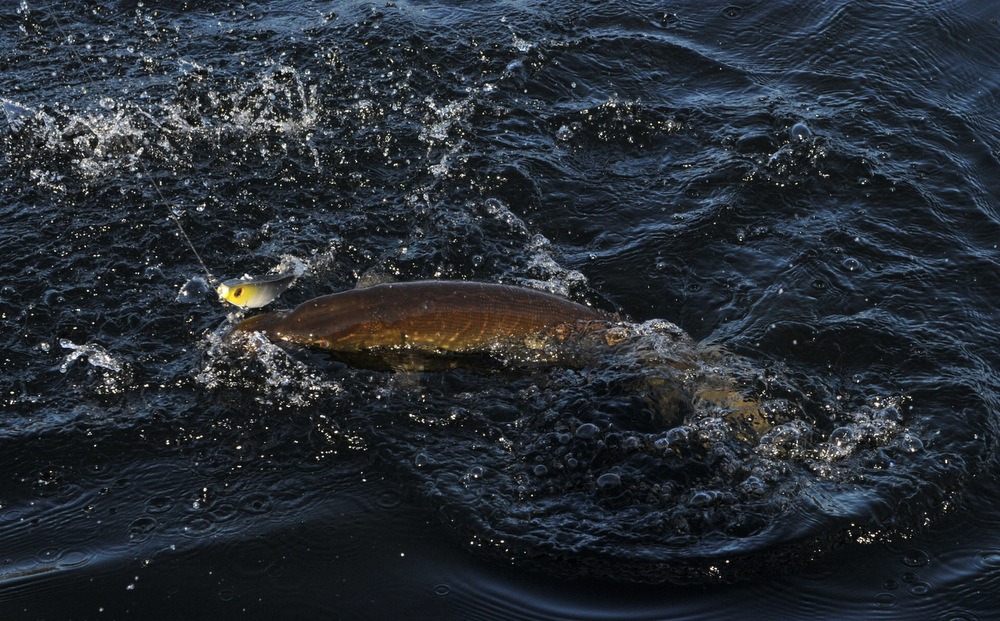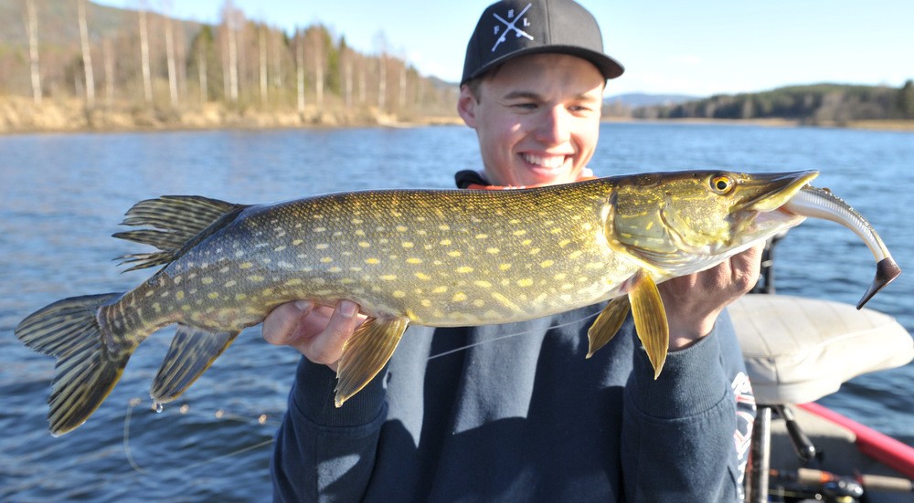 Thomas skulle også få fisk på grisen en pen gjedde på