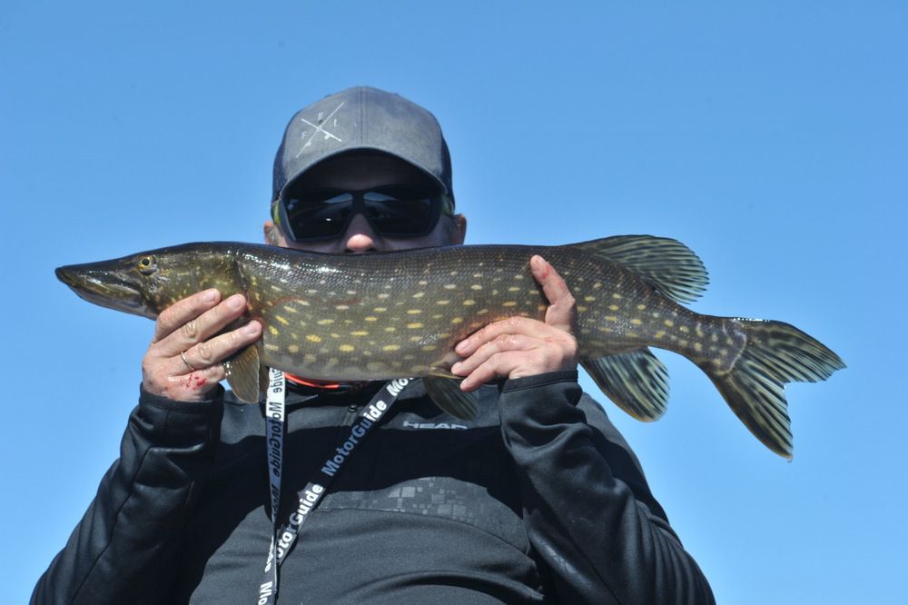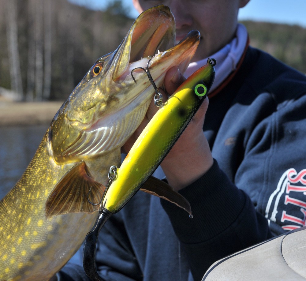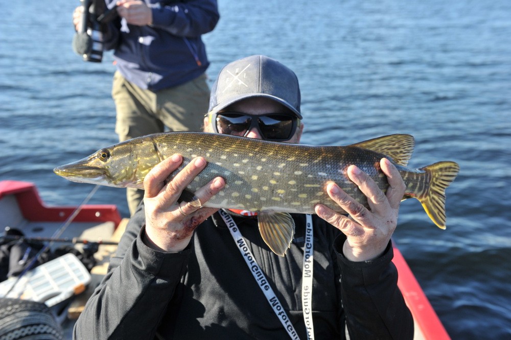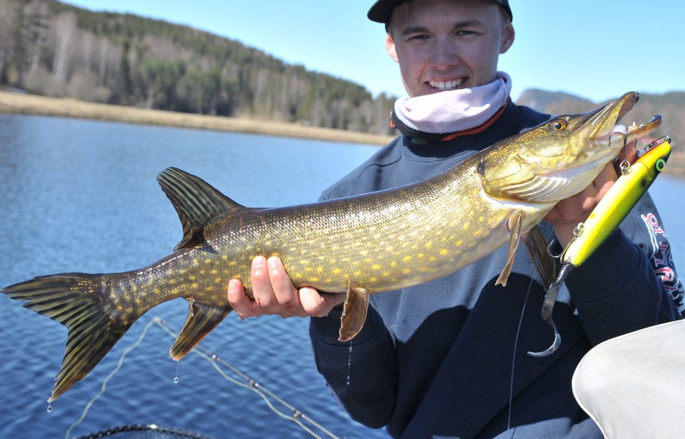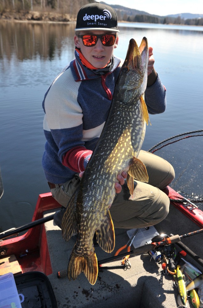 En riktig fin gjedde Markus holder her, tatt i et område som normalt sett huser mye men små fisk. Rett før hadde jeg mistet en ok fisk, så tyder kanskje på at det hadde blitt gjort et rollebytte.