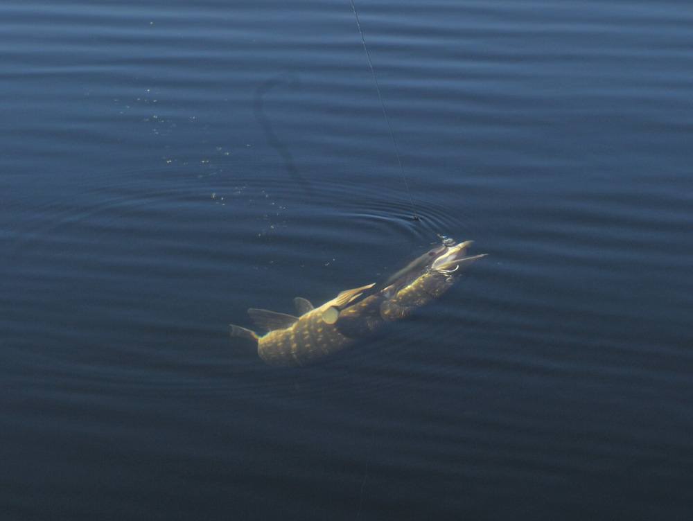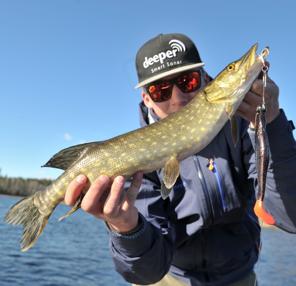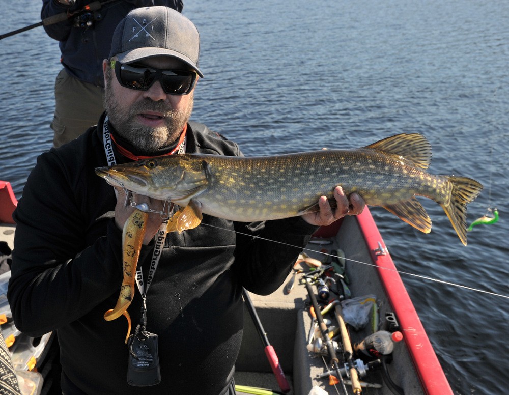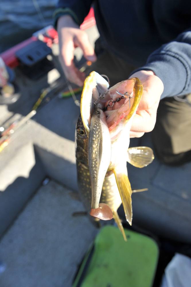 En riktig fin gjedde Markus holder her, tatt i et område som normalt sett huser mye men små fisk. Rett før hadde jeg mistet en ok fisk, så tyder kanskje på at det hadde blitt gjort et rollebytte.