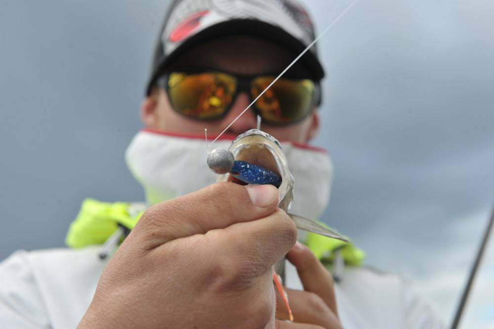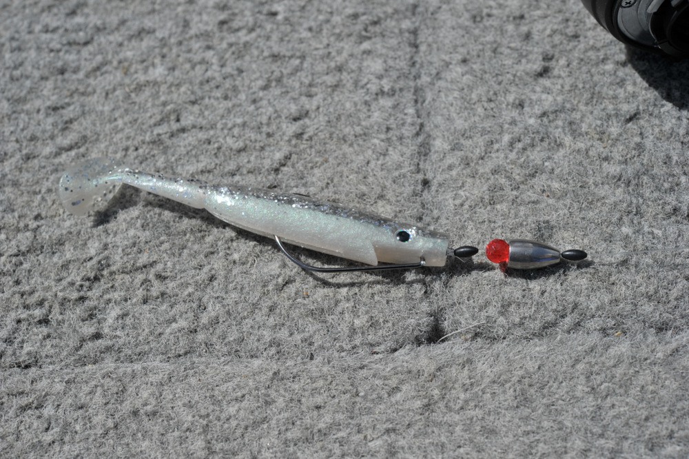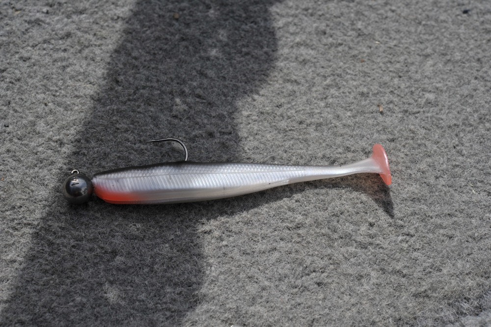 Denne curlytailen kommr fra Beher og var utrolig effektiv med Illex Heavy Straight Jig Head. Fikk flere på denne.