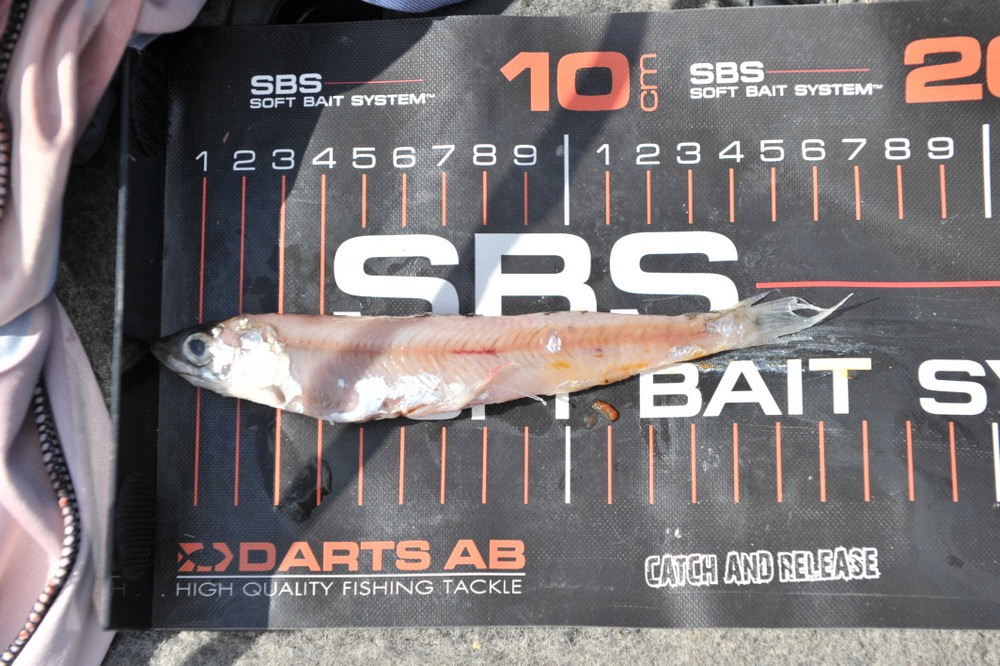 Vi fisker med baits fra 5 til 12 cm over det tørr man nesten ikke gå. Men man kan jo begynne å lure når man ser hva den fisken over her hadde i munnen på bilde under her. 16cm lågasild vil jeg tru dette er.