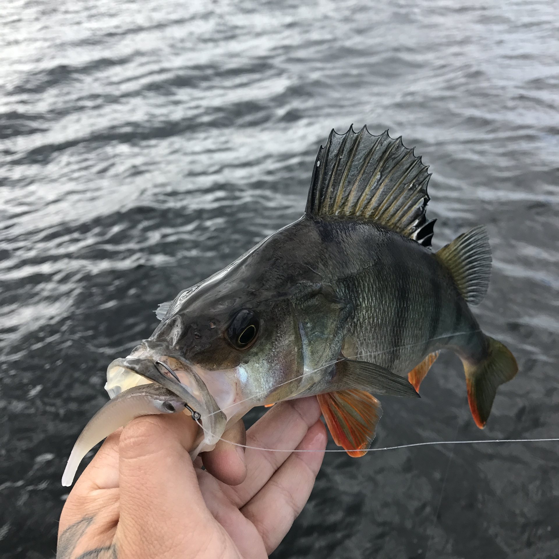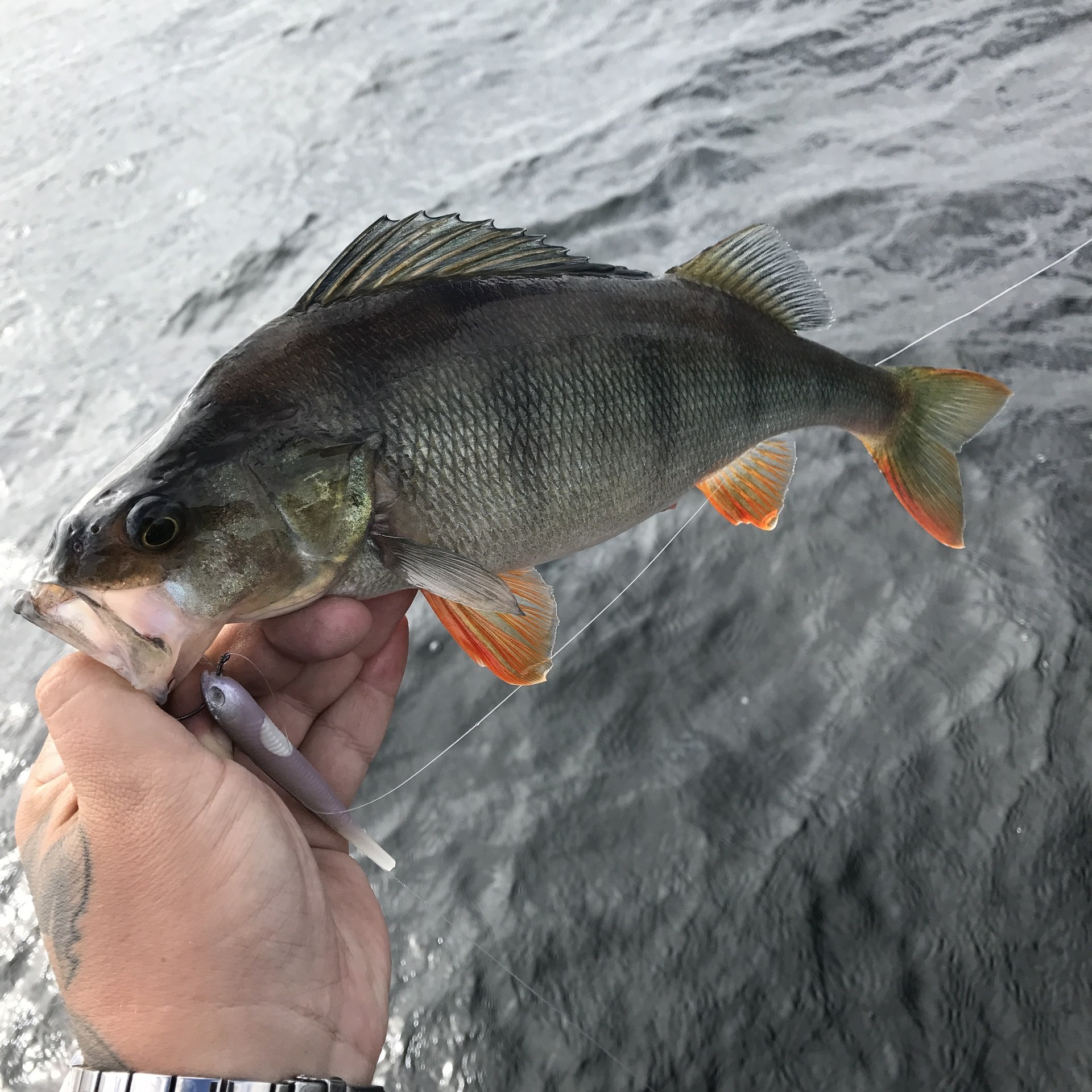 Atle gikk over til shad fiske og dro fort ett par riktig feite abborer. På en 9 cm shadteez i fargen motoroil.