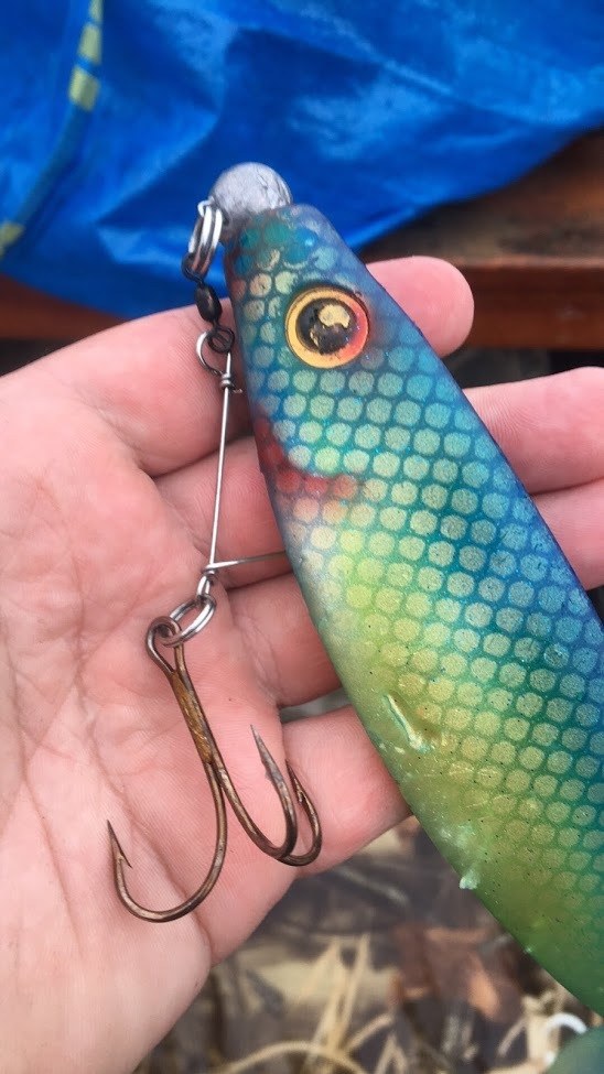 Jeg var ferdig med mitt fiske etter den gjedda, så jeg satt å så på at han som var med perset på gjedde for andre gang. Gjedde på ca 1,4 kg, som tydeligvis hadde vært i kjeften på ei større gjedde. Men den så vel pw shaden komme forbi, slapp den lille gjedda å gikk for den i stede.