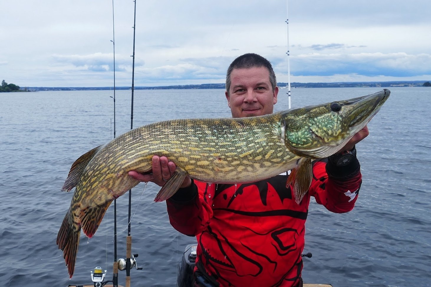 «Bloggpappa må si et par ord først her før dere kan gå over til rapporten fra Kent.  Jeg tror jeg begynner å bli sippete på mine eldre dager for igjen kom det et par tårer. I går kveld da det tikket inn en melding fra Kent. Det var snakk om ei fin gjeddedame. Det i seg selv er jo gromt. Så får jeg beskjed om at denne er tatt på den nye PW GW stanga under testing. Shit å gøy. Så kommer neste, den er tatt på pw shadden. Da begynte jeg å sippe litt og når Kent sende meg et bilde og  jeg fikk se genseren han hadde på, ja da var det grining igjen hehehehehe.  Det ligger extremt mange timer med tenking og grubling rundt disse produktene. Jeg har mistet tellinga på våkennetter som jeg har hatt. Det har vært telefoner, det har vært mailer, det har vært bilturer. Det har vært testinger, det har blitt gjort endringer, nye testinger.  Til tider er det utrolig slitsomt og tanken på å gi f**** har vært til stede, men på kvelder som i går så forstår jeg hvorfor jeg holder på med dette og hvilken glede det gir meg i livet.