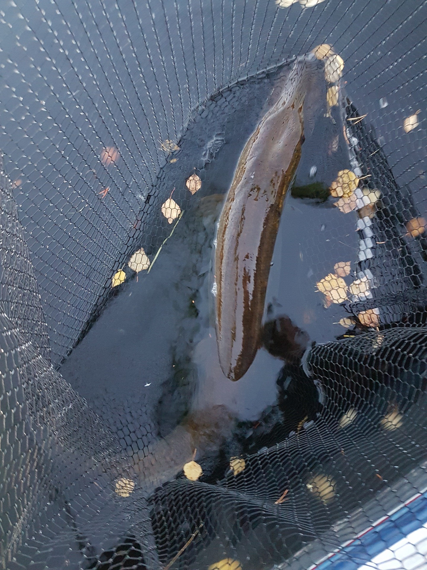 Etter litt frem og tilbake ang lengden, har vi blitt enige om å klokke den inn på 118 cm og hele 13.5kg! Da snakker vi virkelig god kondisjon!