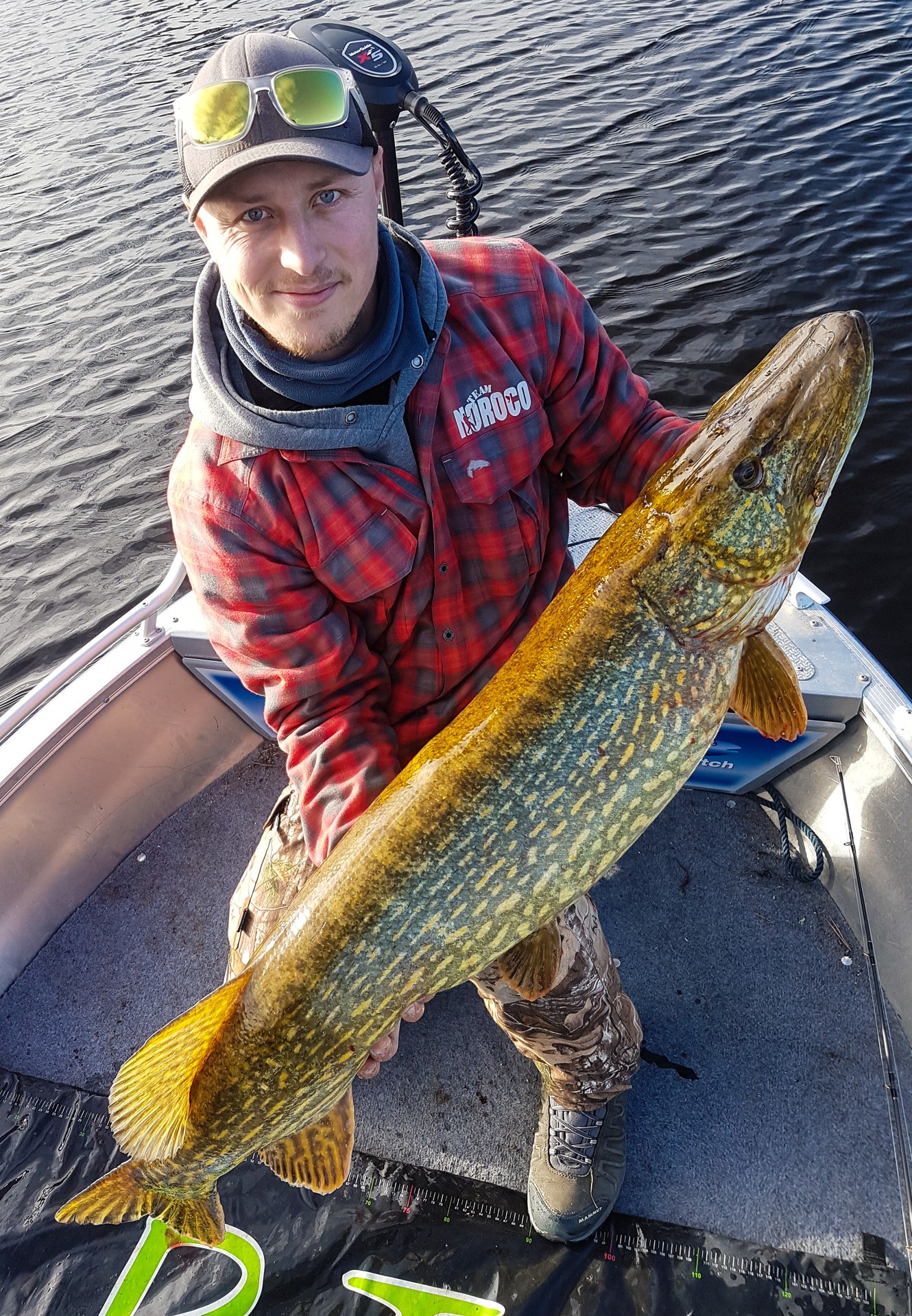 For en start på dagen, og for en flott fisk! 116cm og 11.1kg. Klokka er ikke en gang 08 på morgenen og dagens gjest i båten har ikke kommet enda. Christoffer Askheim fra Team Noroco skal ta turen oppover fra Drammen for å prøve seg på gjedda i Solør.
