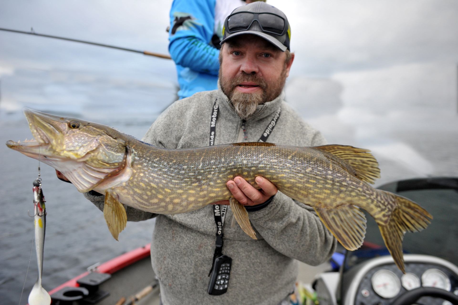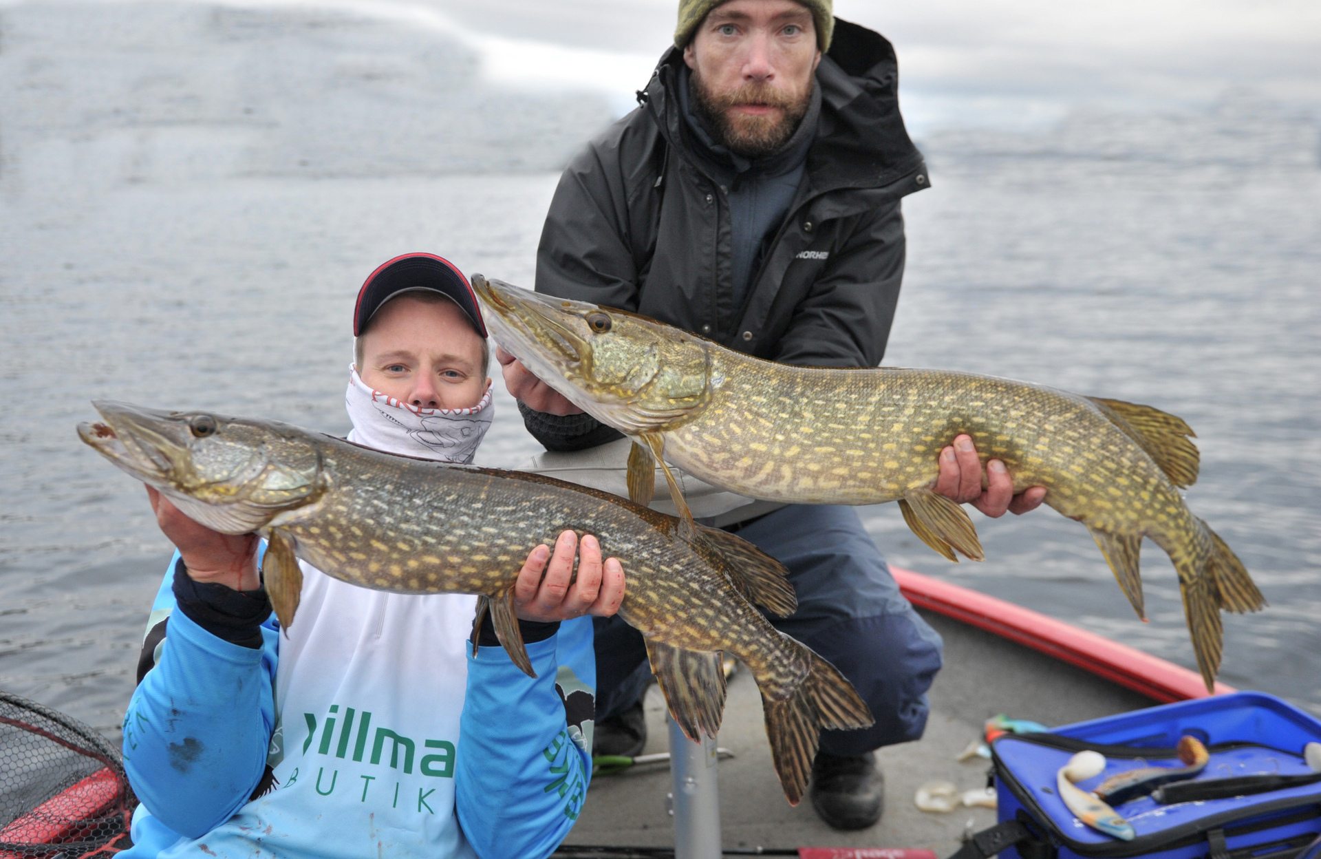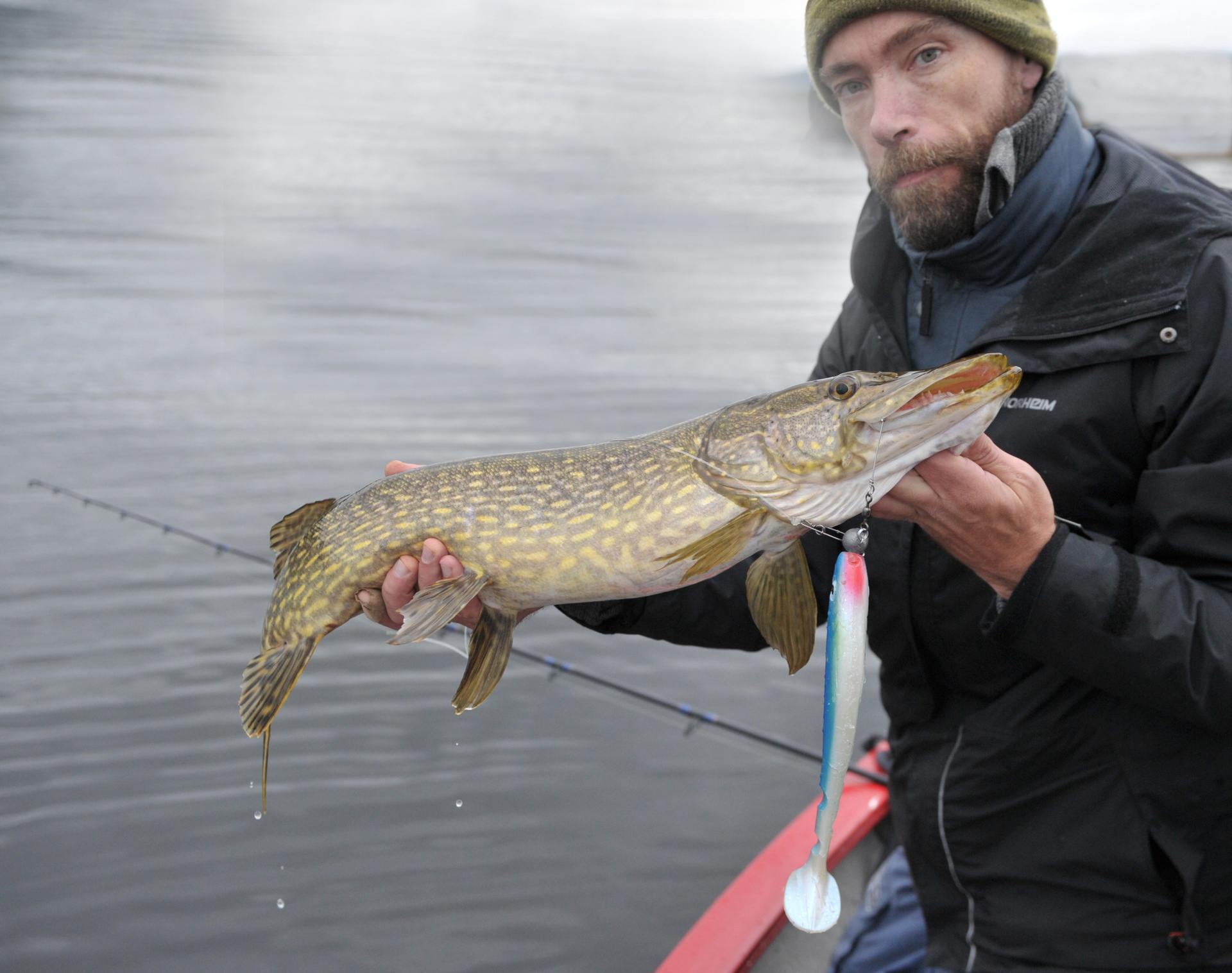 Og her var Michael i honning himmelen. 5,4 kg veide gjedda hans. Du kan se det i hans honningblikk at nå var det i boks.