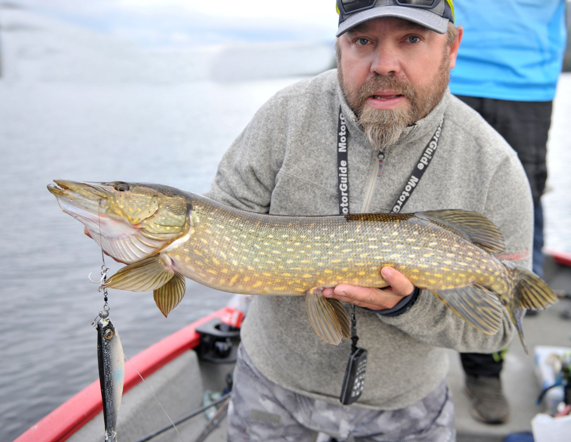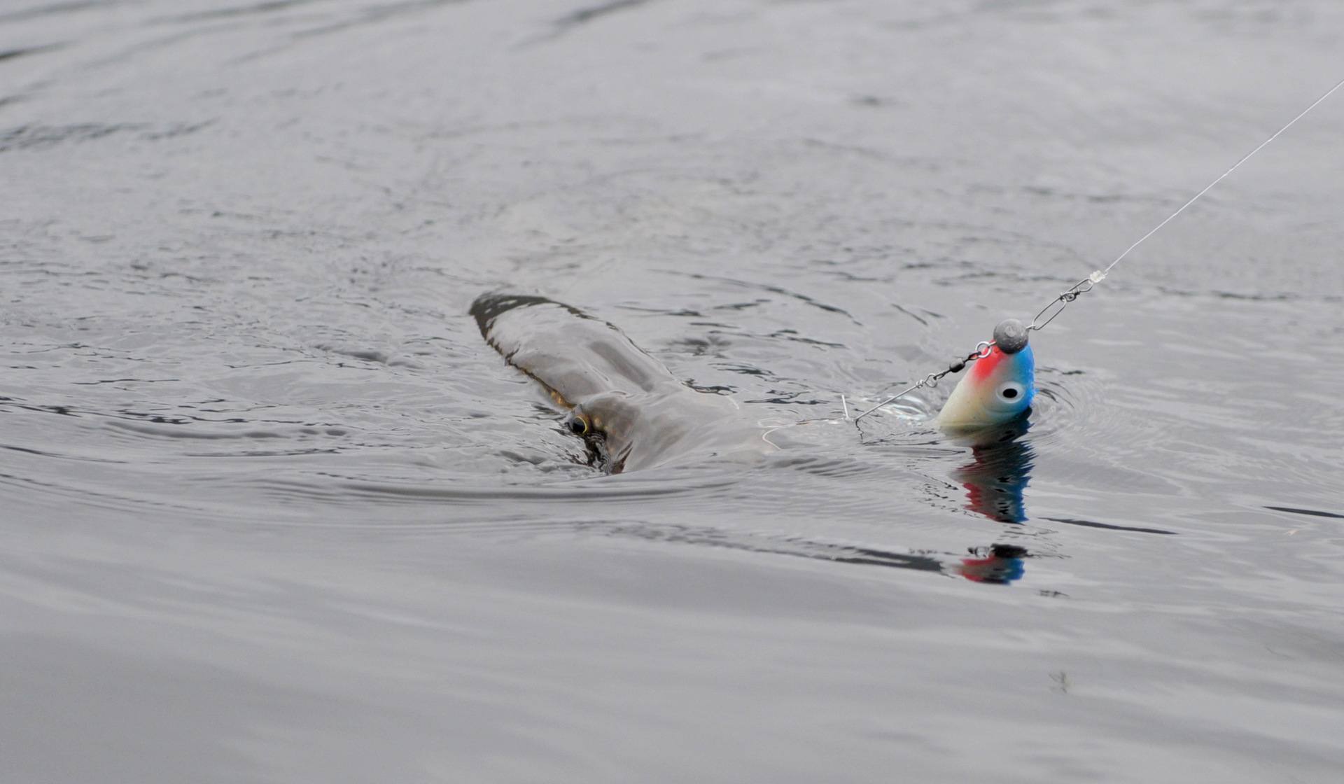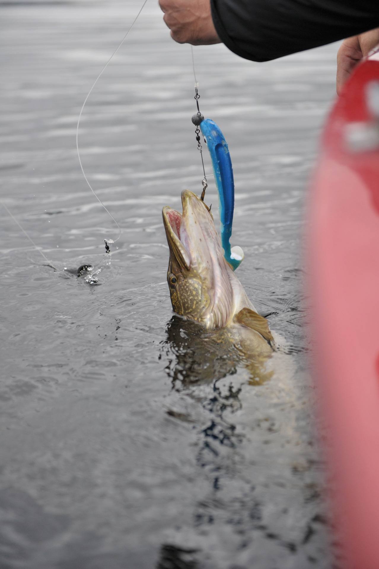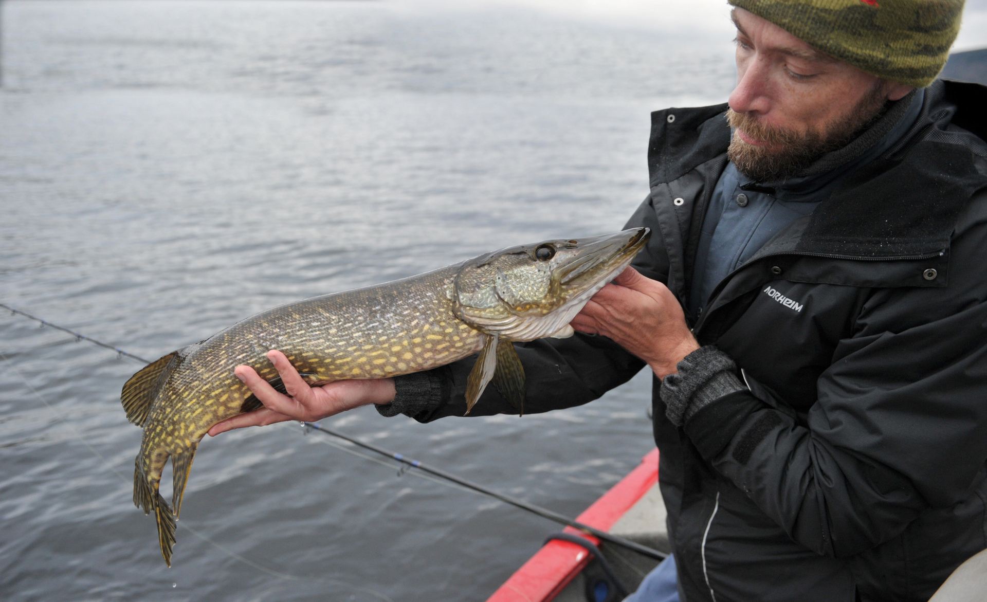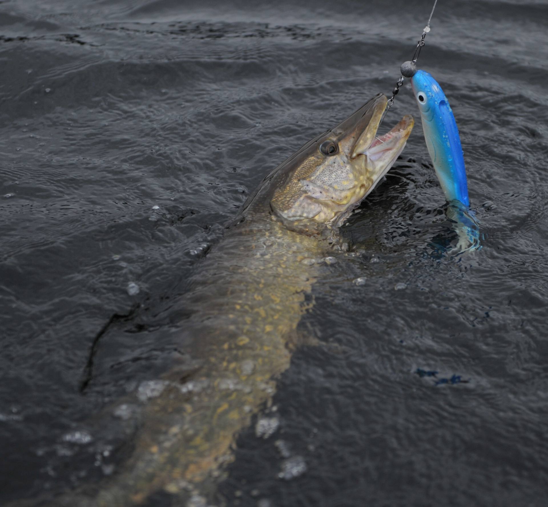 Jeg var så heldig å få dagens første gjedde. Ingen gris, ikke en gang en minigris, men helt ok kondisjon.