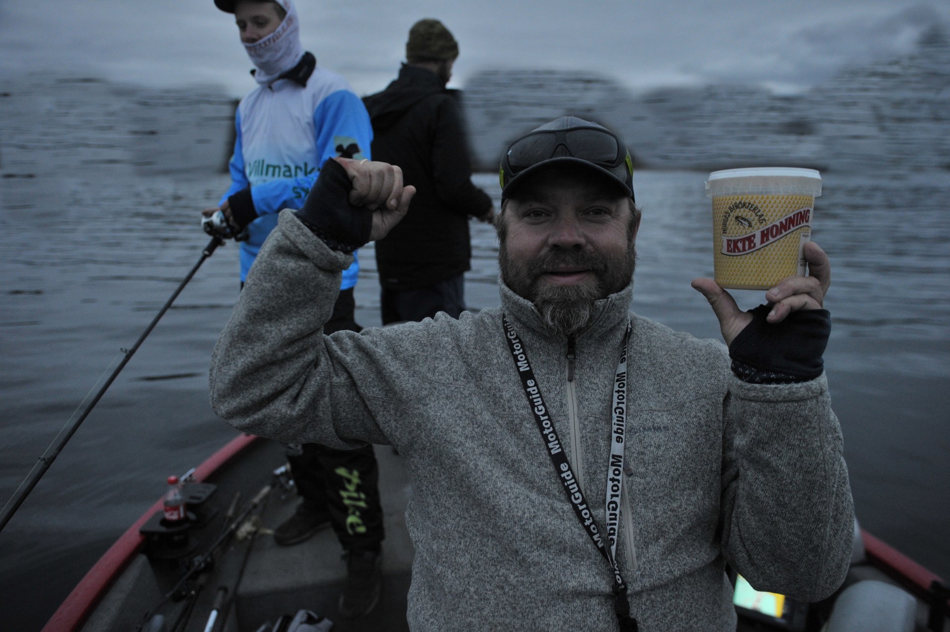 Kristin hadde med seg en premie til tyngst fisk denne dagen. Honning laget hjemme på gården og den var det fight om å få tak i.