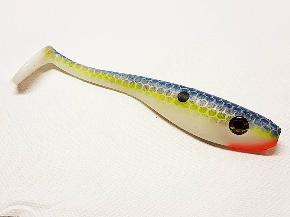 En herlig rocken roll shad. Ruller og vrikker på seg. Formen på den digger jeg med sin noe runde kropp og tøffe profil. Denne lukter det gjedde av til og med på vinteren.