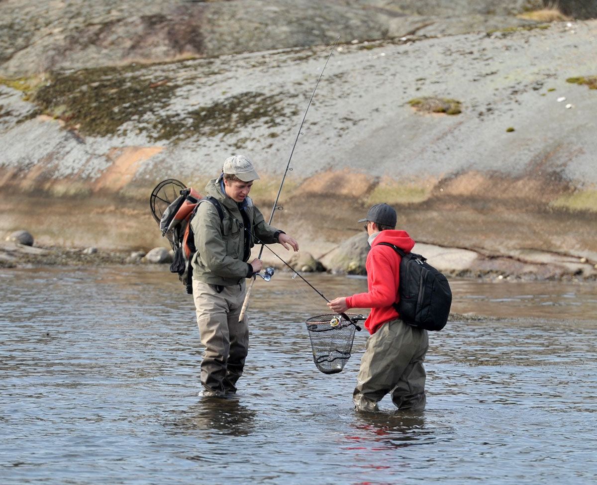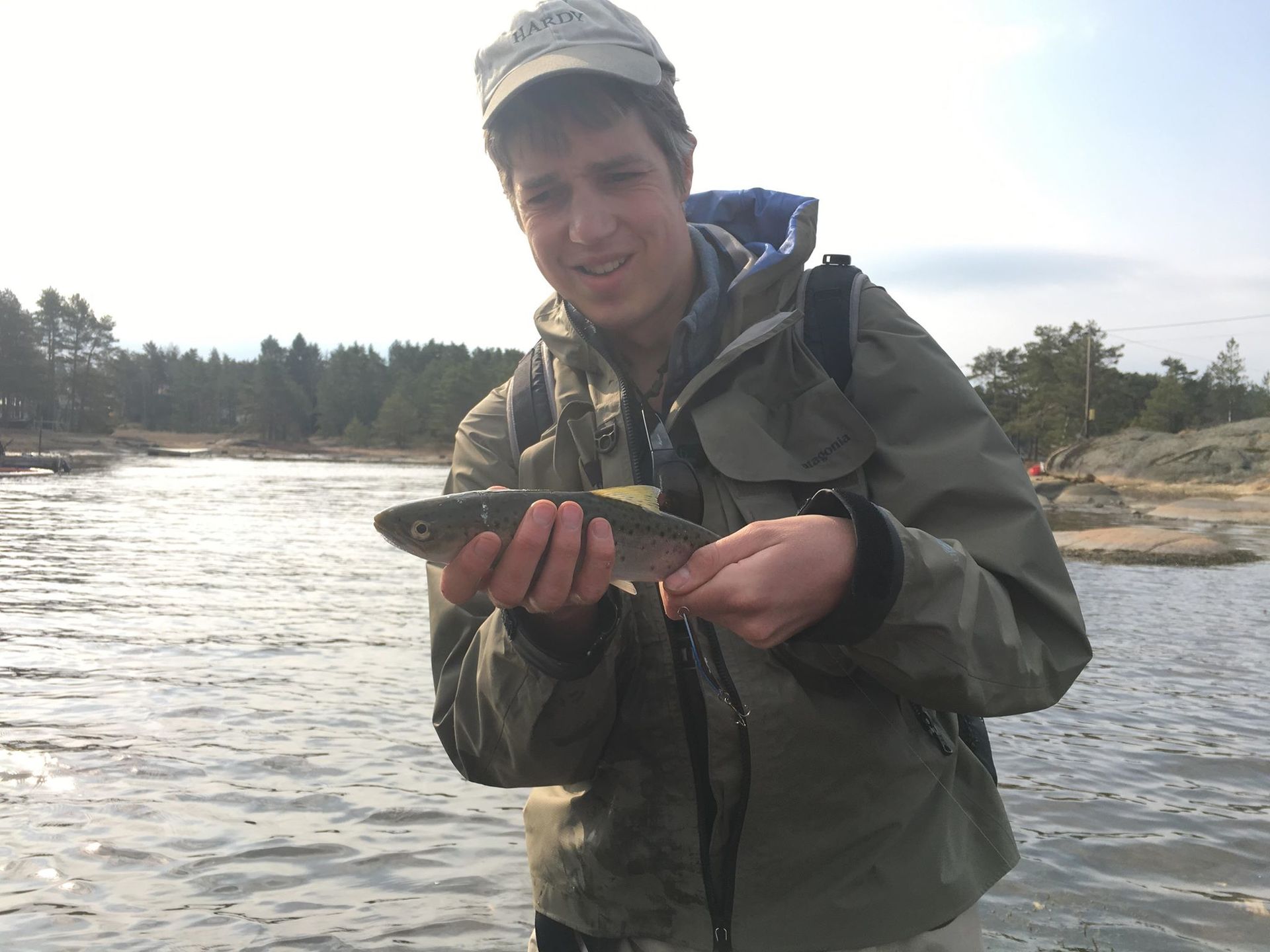 Thomas fikk også et par fisk til slutt. Været frem til litt ut på ettermiddagen hadde vært for fint. Litt for lite vann og veldig klart vann. Litt vind og floa på veg opp så kom det inn litt fisk.