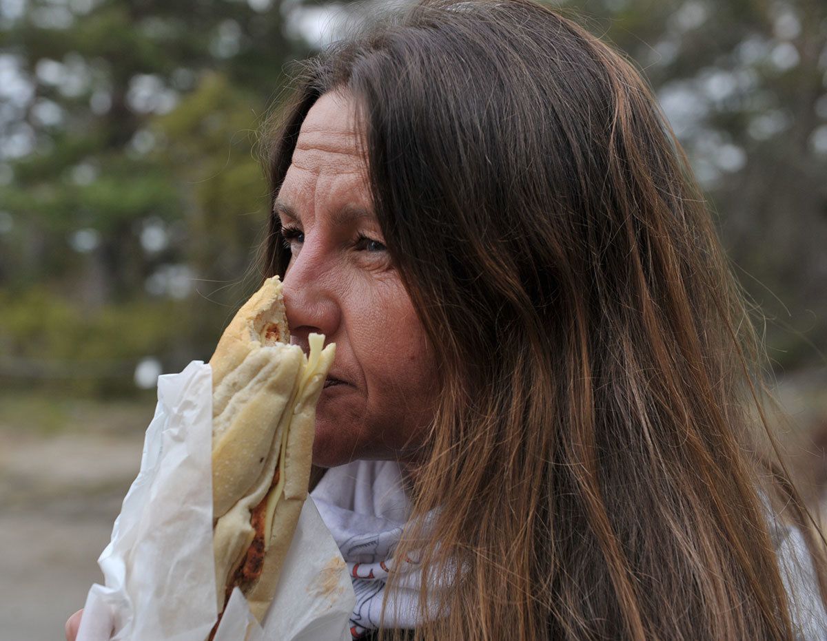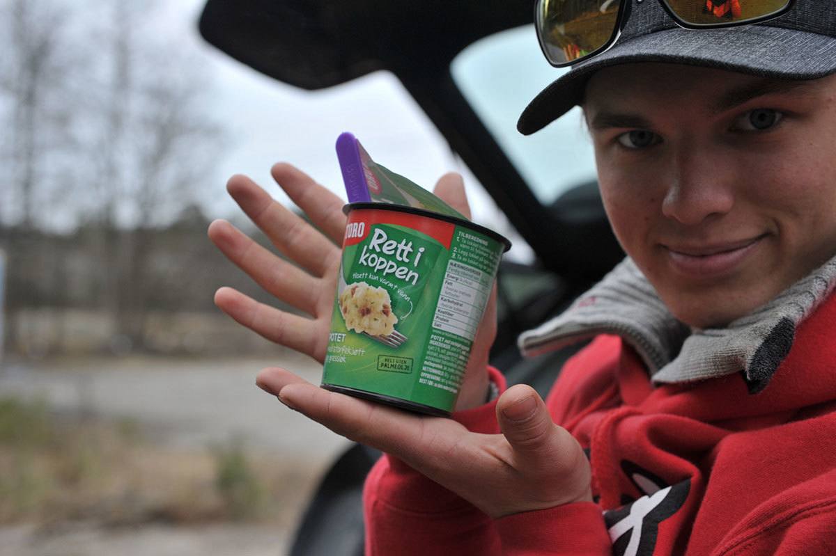 Nå ble vi ikke så lenge etter som vi føle oss noe presset vekk, så vi rusla opp til bilen og fikk oss litt fornuftig mat. Eller kremt kremt noen spiste bolle med masse vaniljekrem på. I min Grete Rode tid er det nesten så man kan drepe for noe slik, men med null kosemerker igjen måtte jeg ty til noen peanøtter.