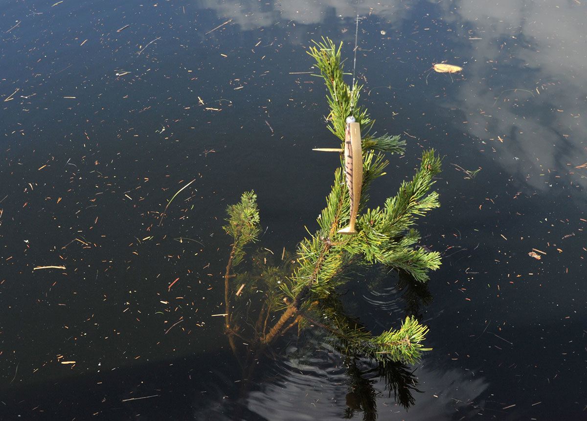 Det tyngste nappet fikk jeg på slutten, det var ei lita furu som hadde blitt med opp.