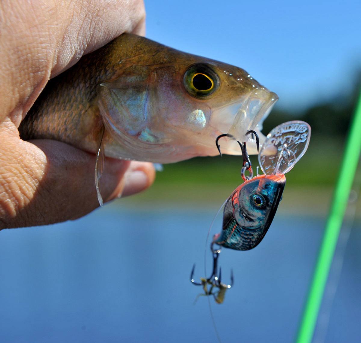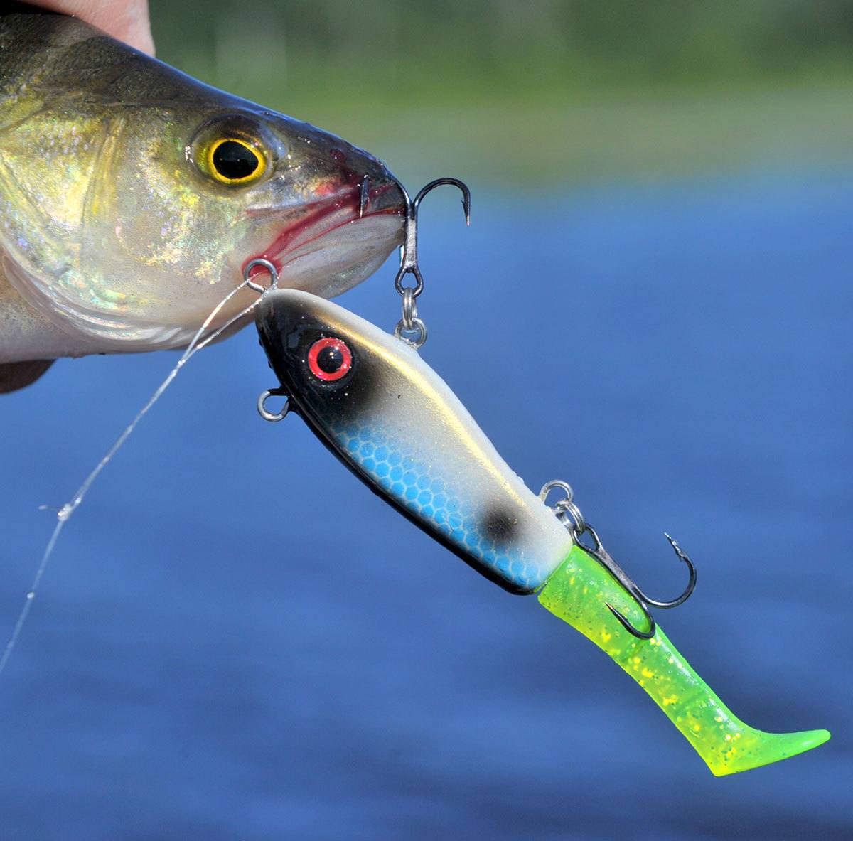 Vi fisket veldig grunt i starten så vi prøve både små gruntgående wooblere og watermonitor fra Illex. Et lite herlig jerkbait som går både over og under vann.
