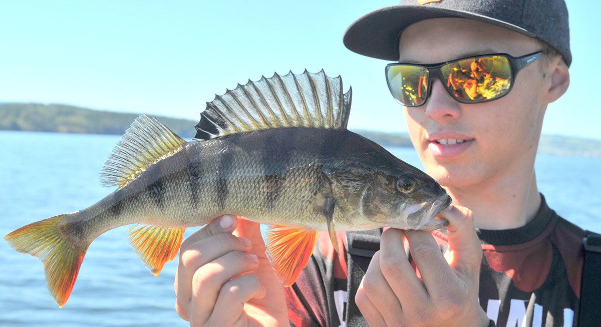 Han er rimelig ny på abborfiske og det var stas at han fikk ta del av denne turen.
