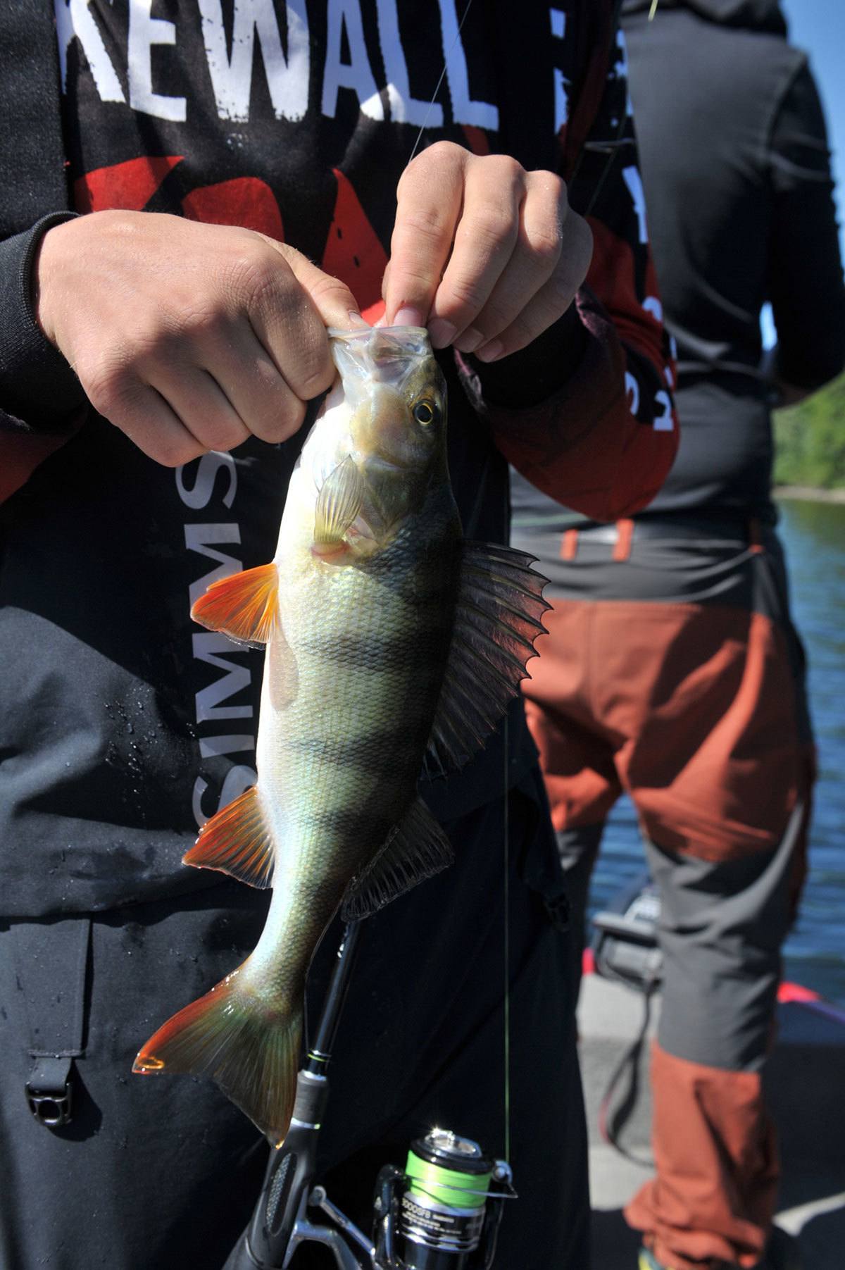Det testes stenger over en lav sko og dette med bass landing som ungutta liker å kalle det går som en drøm. Abbor på opp til 660 gram vippes bare opp i båten. Det er rett og slett og stemning i båten. Og Aleksander han hadde blitt lutt stum av det hele.