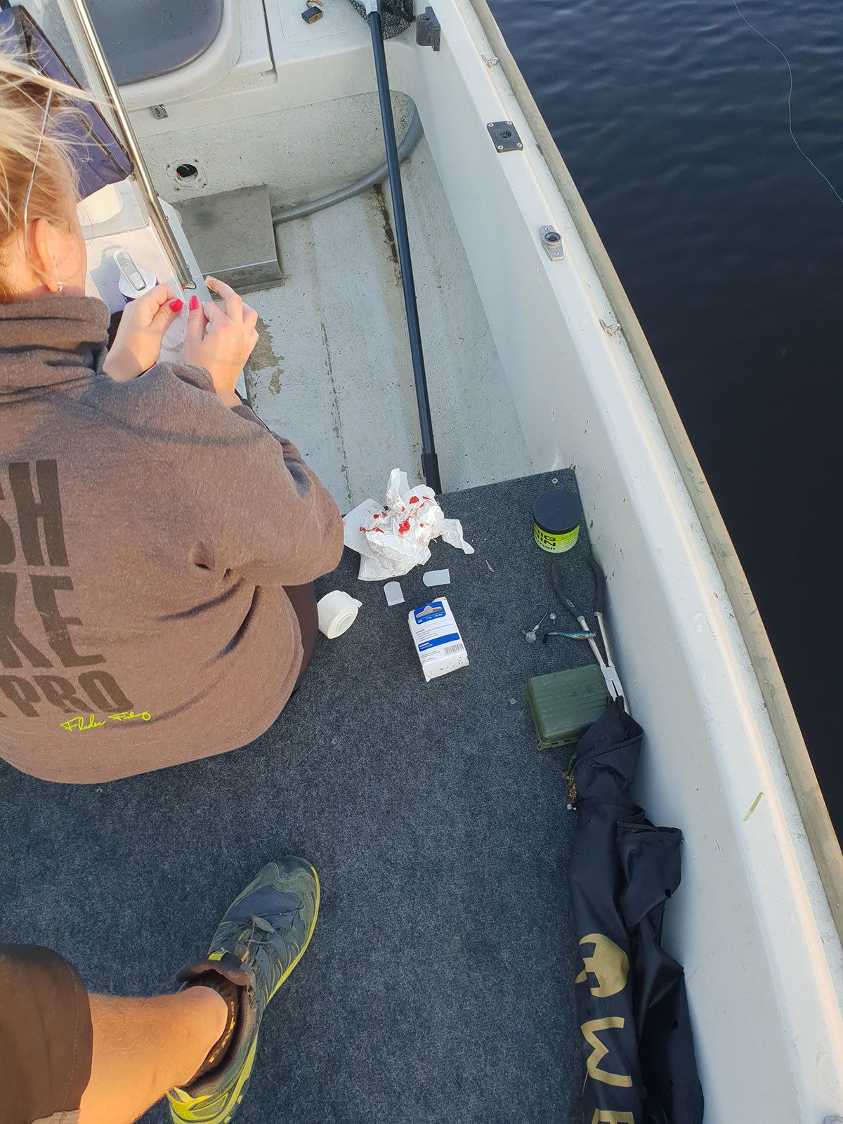 Klokka nærmet seg 16.00 da vi fant ut at vi skulle ta en snartur ut på vannet for å prøve abborlykken. Det var en del vind denne dagen, så vi var veldig spent på hva kvelden ville bringe. Etter mye om og men om hvor og når, var vi endelig ute på vannet rundt kl. 18.00.