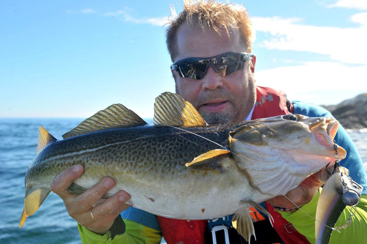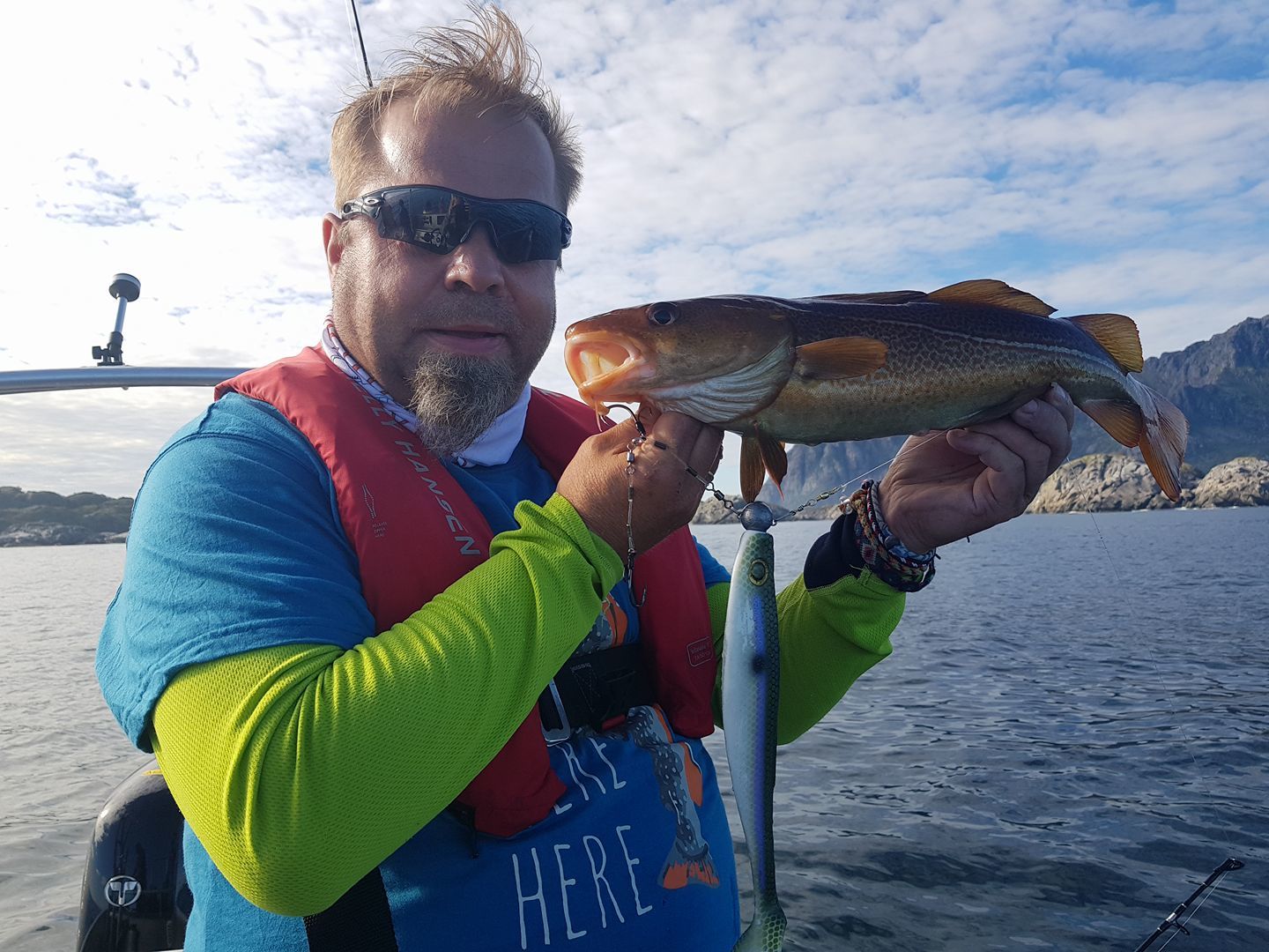 Selv så måtte jeg teste pwshadden og det smakkade til med en gang det. Litt større torsk kom opp. Vi er ikke på skrei nivå så langt der i fra men litt større en de minste. Herlig å kjenne torsken kline til på shadden min. 50grams skalle fra Wolfcreek og en vanlig stinger.