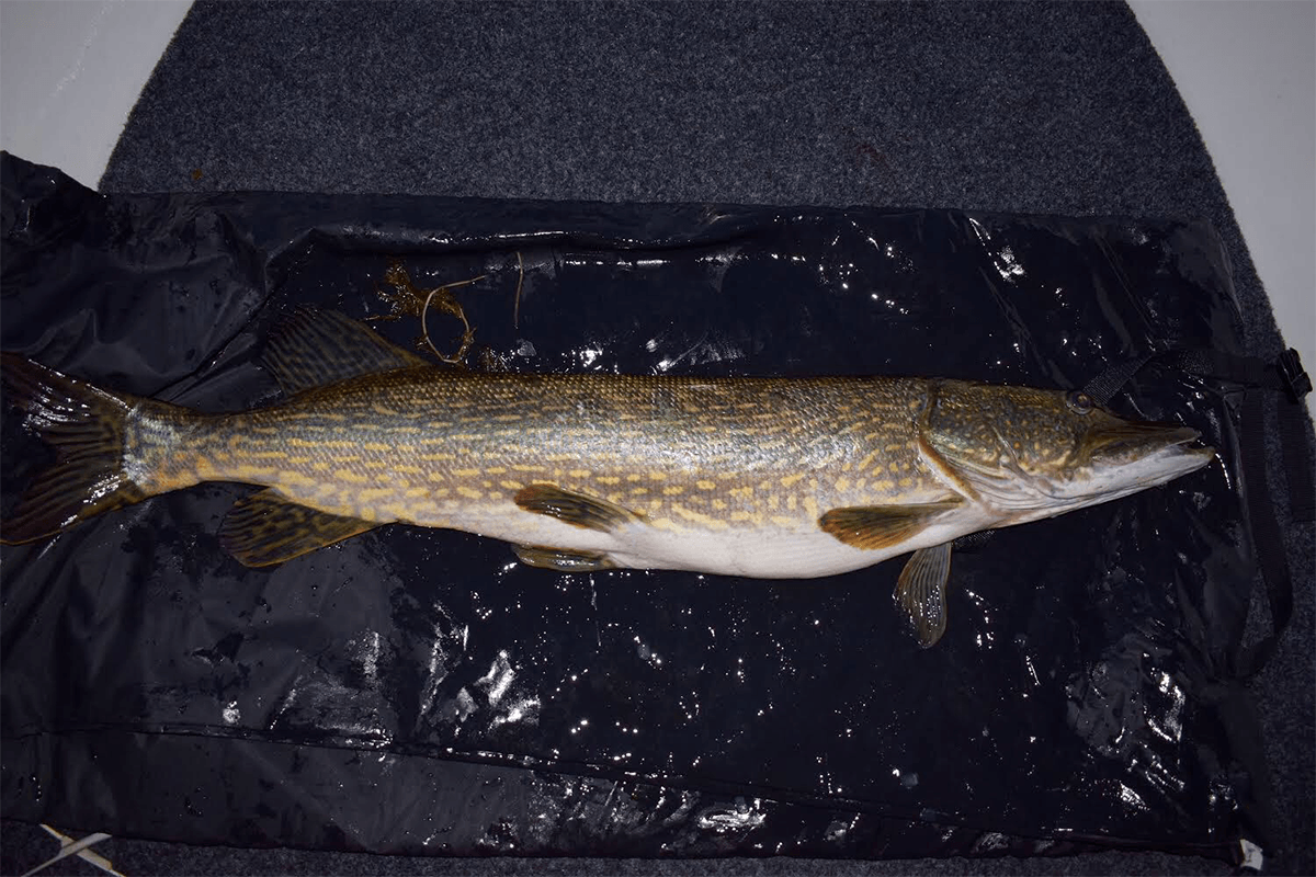 Etter en kort søvn begynner jeg å fiske igjen, det ble 3 gjedder på morgenen. Men de var små.
