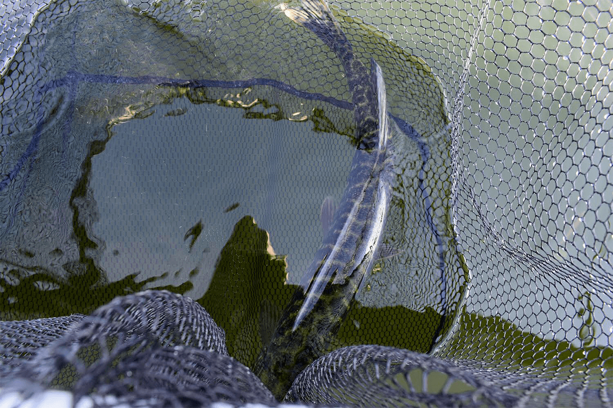 Det var ikke akkurat den hyggeligste gjedda jeg har fått. Hun bæsja ned hele båten, det var sikkert for å ta tilbake på meg. Jeg skulle også sove i båten, noe jeg ikke så fram til nå. Etter en liten vask fortsatte jeg fisket. Det tok en time før andre fisk sitter. Jeg fisket fortsatt helt på bånn, sakte sakte. Og det var et seriøst hugg, først kjentes det ut som at jeg satt fast. det sto helt stille og jeg kunne ikke gjøre noe. Så kommer det noen hodebevegelser og jeg kjenner at det er litt større fisk. Etter en kort fight ligger fisken i håven. Jeg tenkte at det var en fisk rundt 7 kilo, men etter å ha tatt en titt, forstår jeg at det kan være PB. Etter å ha veid, målt, tatt bilder og sluppet den ut igjen sier jeg meg fornøyd.