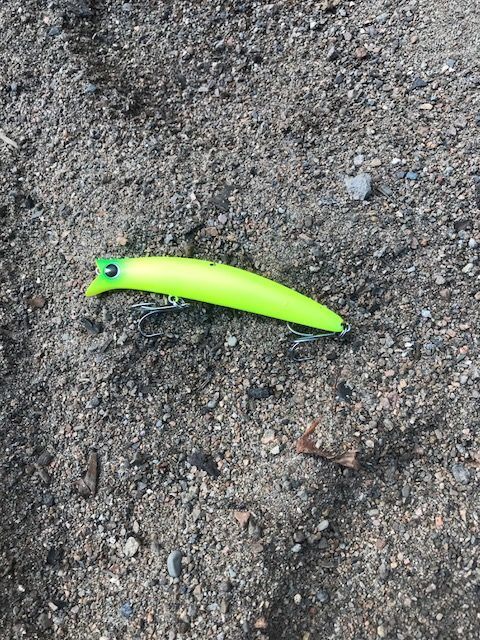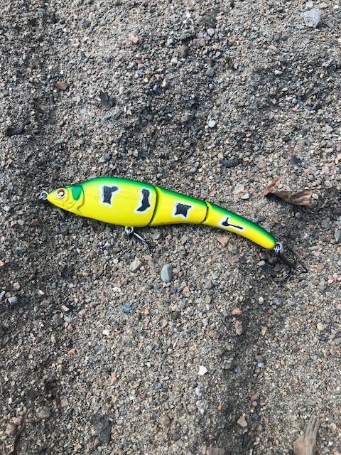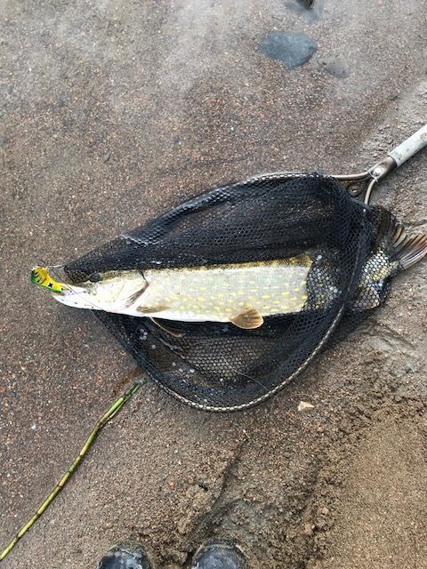 Det ble en liten gjedde på meg i dag som jeg anslo til å veie rundt halvannen kilo. Gjedda heiv seg over en jerkbait og det ble en kort, men heftig kamp.