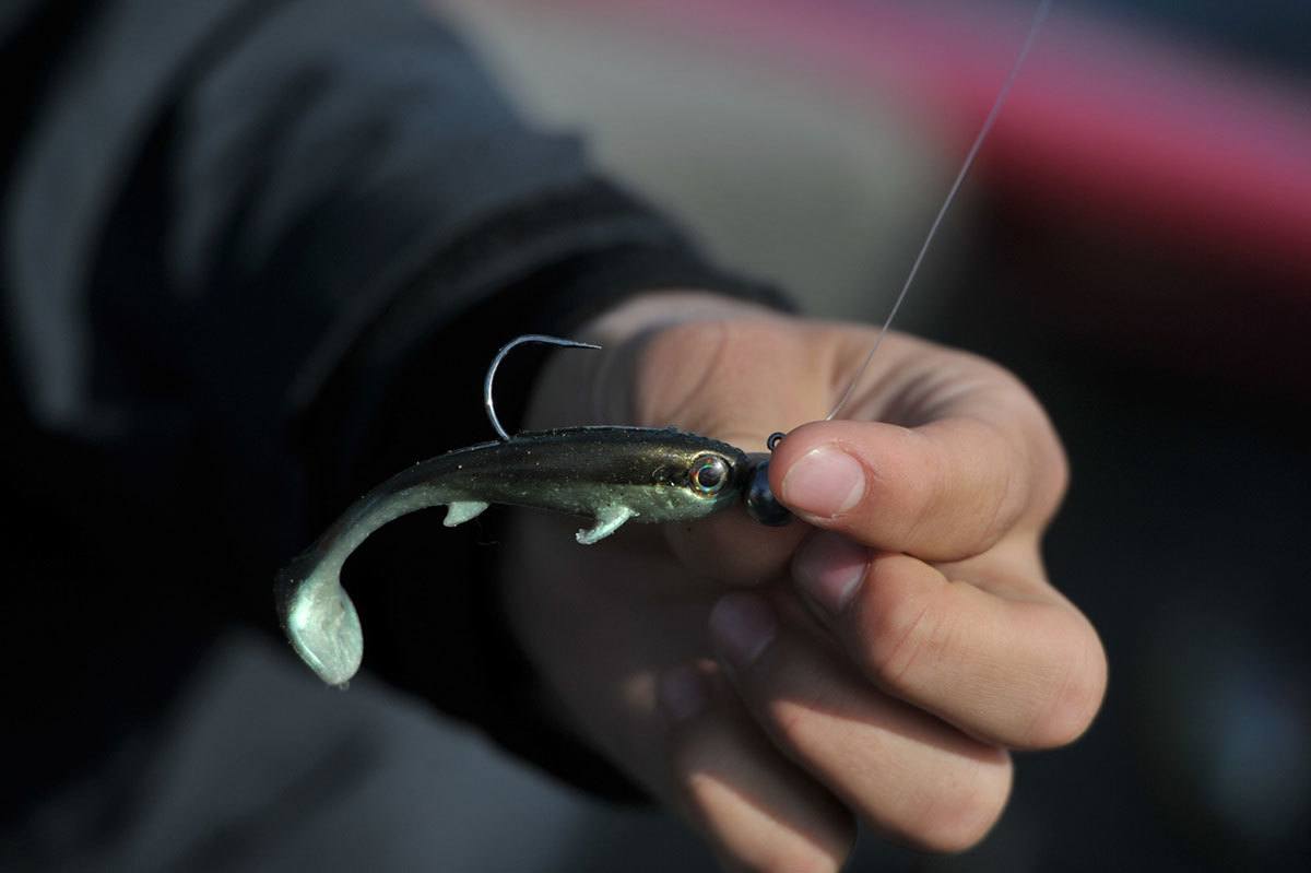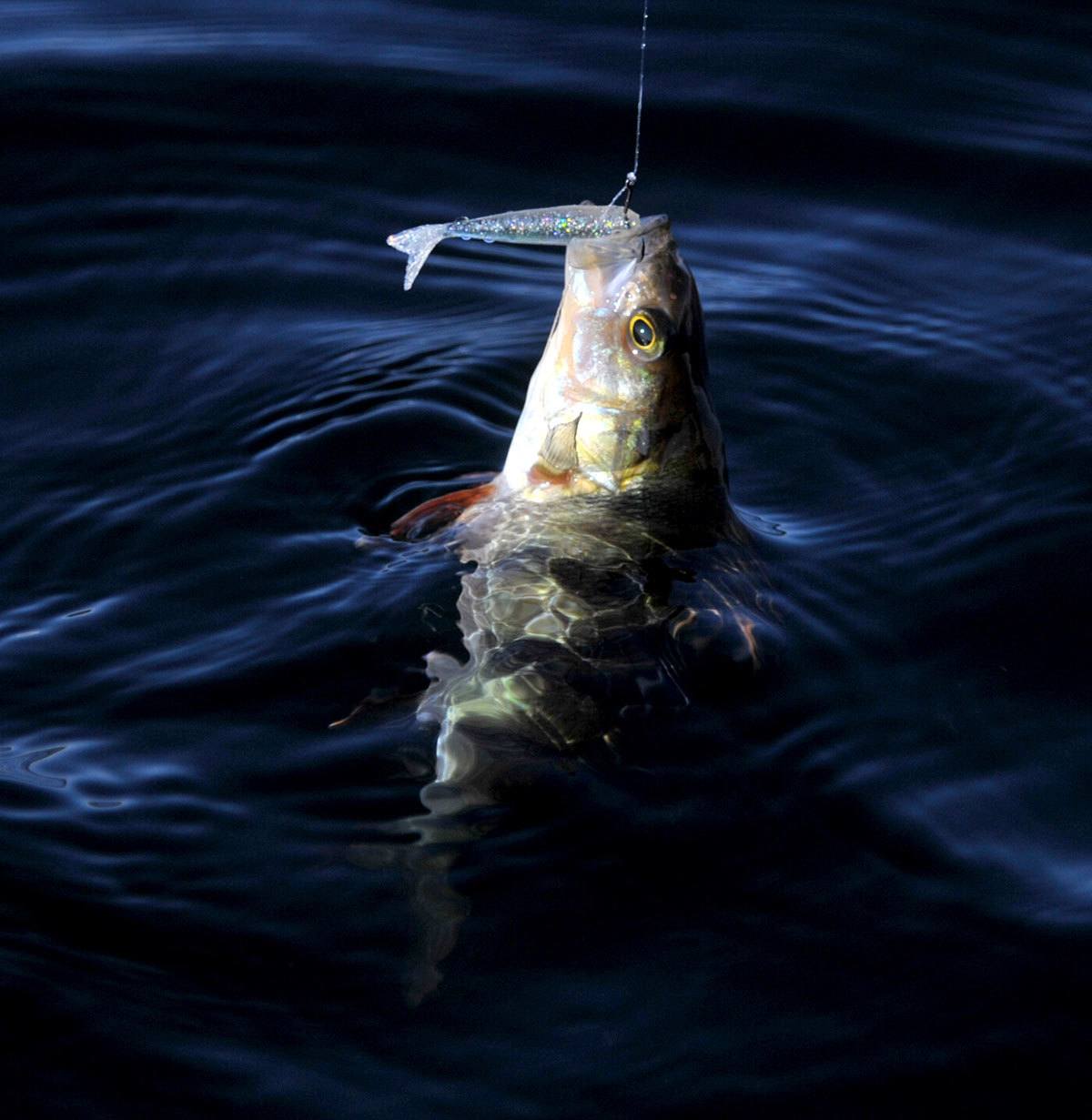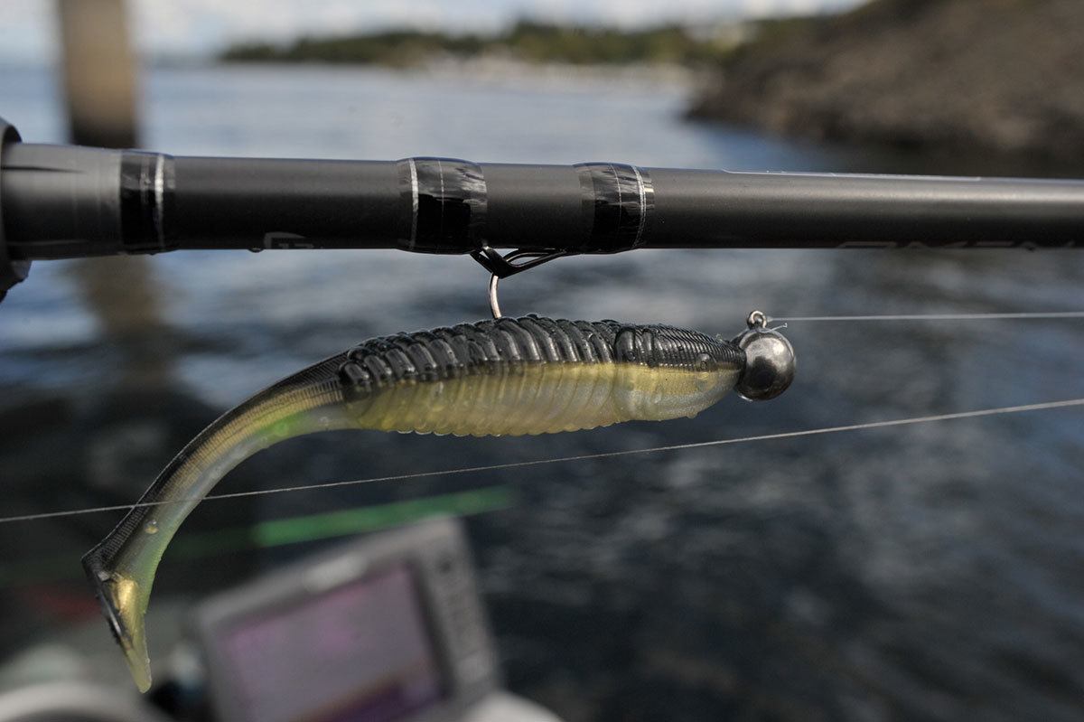 Fisken er utrolig sprek, de drar ut line og man tror man har bikka denne fordømte kilos grensa gang på gang. Men nei da, de er fra 400-600gram. Et helt utrolig artig fiske selv om de ikke er av de største. På denne tiden går det mye på dropshotfiske for min del, men i dag tok de alt, når de først var innom en tur. Men en utmerket seg litt under vanlig jiggfiske og det var swimshad . Denne fanget bra selv uten fisk synlig på loddet. Fisket sakte nærer bunnen. Små slow motion løft for så å slippe den slow motion ned igjen.