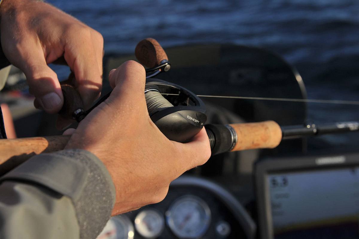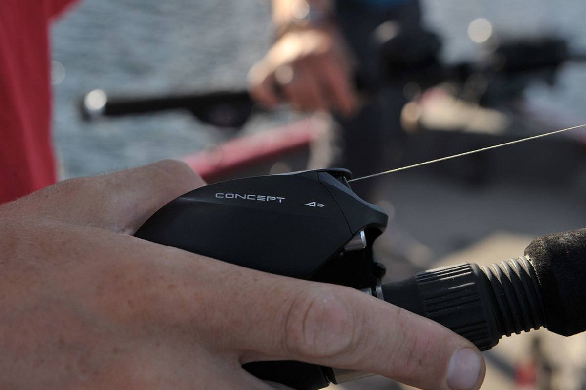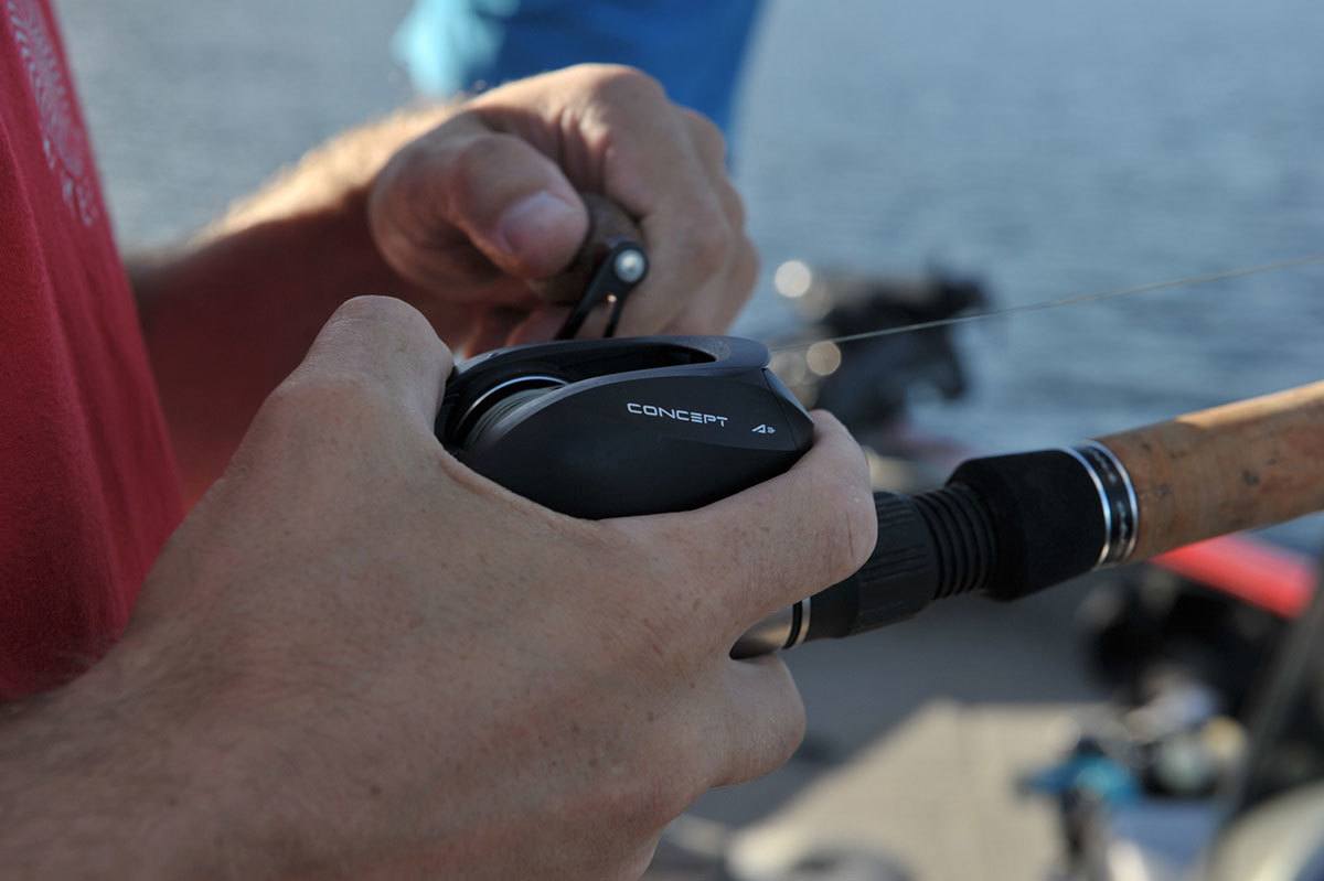 Snella så kjørte Kent og Michael 6:3 på utveksling og jeg hadde tatt på 8:3 og det skal sige man merket. Jeg er ikke vant til sneller med en slik utveksling, men det er jeg redd jeg fort kan bli. Klart du må sveive vesentlig saktere hvis du vil fiske normalt men fader for en variasjon snella gir deg under innsveiving. Snella virker helt konge og du kaster inn i evigheten. Vi justerte magnetbremsen og for at snella ikke skulle gå helt banans så hadde vi den på 4. Jo lavere jo mindre bremser den. Gud vet hvor langt du kan kaste med denne hvis du slipper den helt løs. Det som er litt interessant er linefører opp i mot trommelen, her går lina rett fra tromlen og ut i lineføreren og ikke fra tromlen ned og så inn i lineføreren. Ser man på lavprofilsneller som er fylt opp med line så går den fra trommel og ned i føreren, på A3 så er trommelen plasser slik at den går rett ut (se bilde lengre ned)