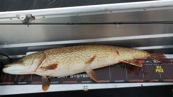 En riktig fin gjedde med riktig fin kondisjon. David Nilsen med sin 10+ fisk nummer 2 27. september 2018 By Erik Walmann En herlig pike på David som drar han opp på 19. plass med denne på 10300gram og 108cm TweetSharePinShare
