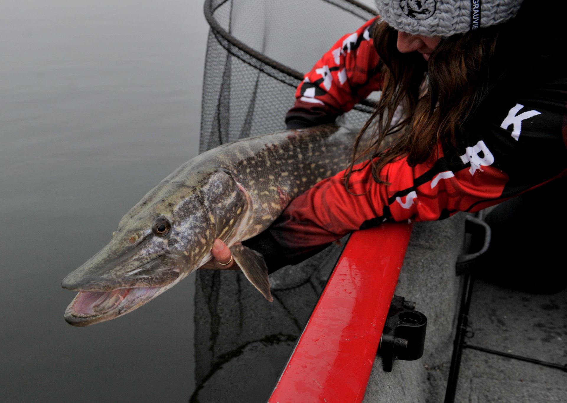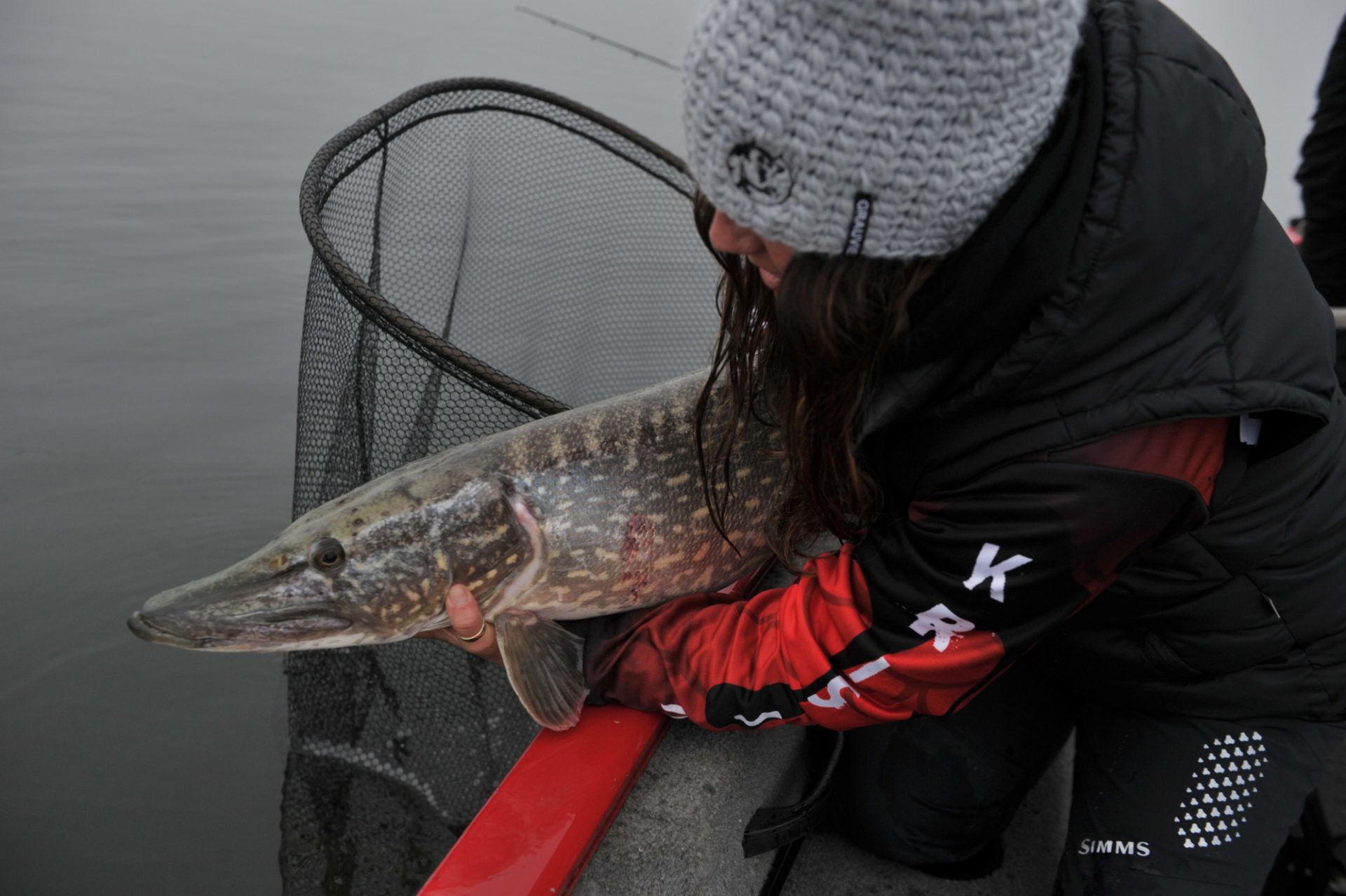 Eirik med en utrolig flott gjedde på vakre 9445gram og 110cm. Da ble det en ny runde med kyss,klapp og klem. Og slik hige five.