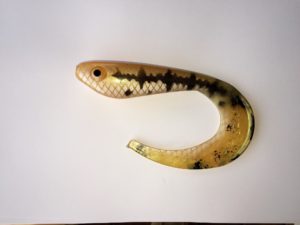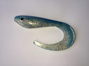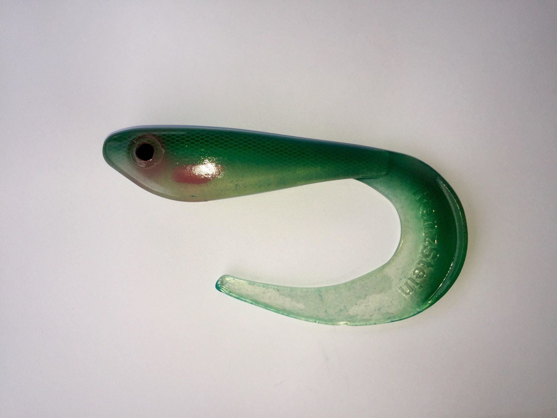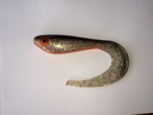 Det henger noen slike igjen på Villmarksbutikken. Nå skal jeg være så beskjeden og anbefale dette som et godt bete. Du har utrolig mye fiske i dette. På med en tung jiggskalle og du kan dunke bunnen på 15-20 meter på treige gjedder, eller du kan vekte de lett og fiske svevende bland bitevillige gjedder.