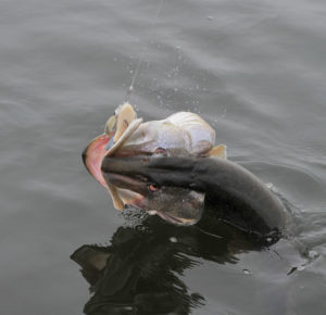 Vi har knapt blitt ferdig med klemminga før Eirik hoier til. Han kjørte nå en bigboy shallow fra Jeff Boggs.  Dra meg i baken eller i noe annet. Enda en ny stor fisk. Og denne kan fort være enda større. Kristin sin fisk sto «dypt» mens Eirik sin sto inne på 3-4 meter.