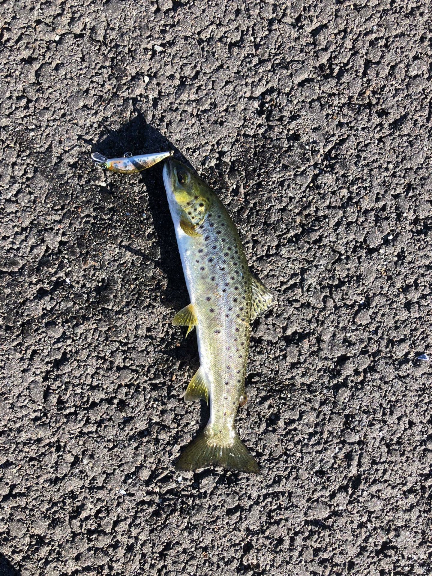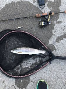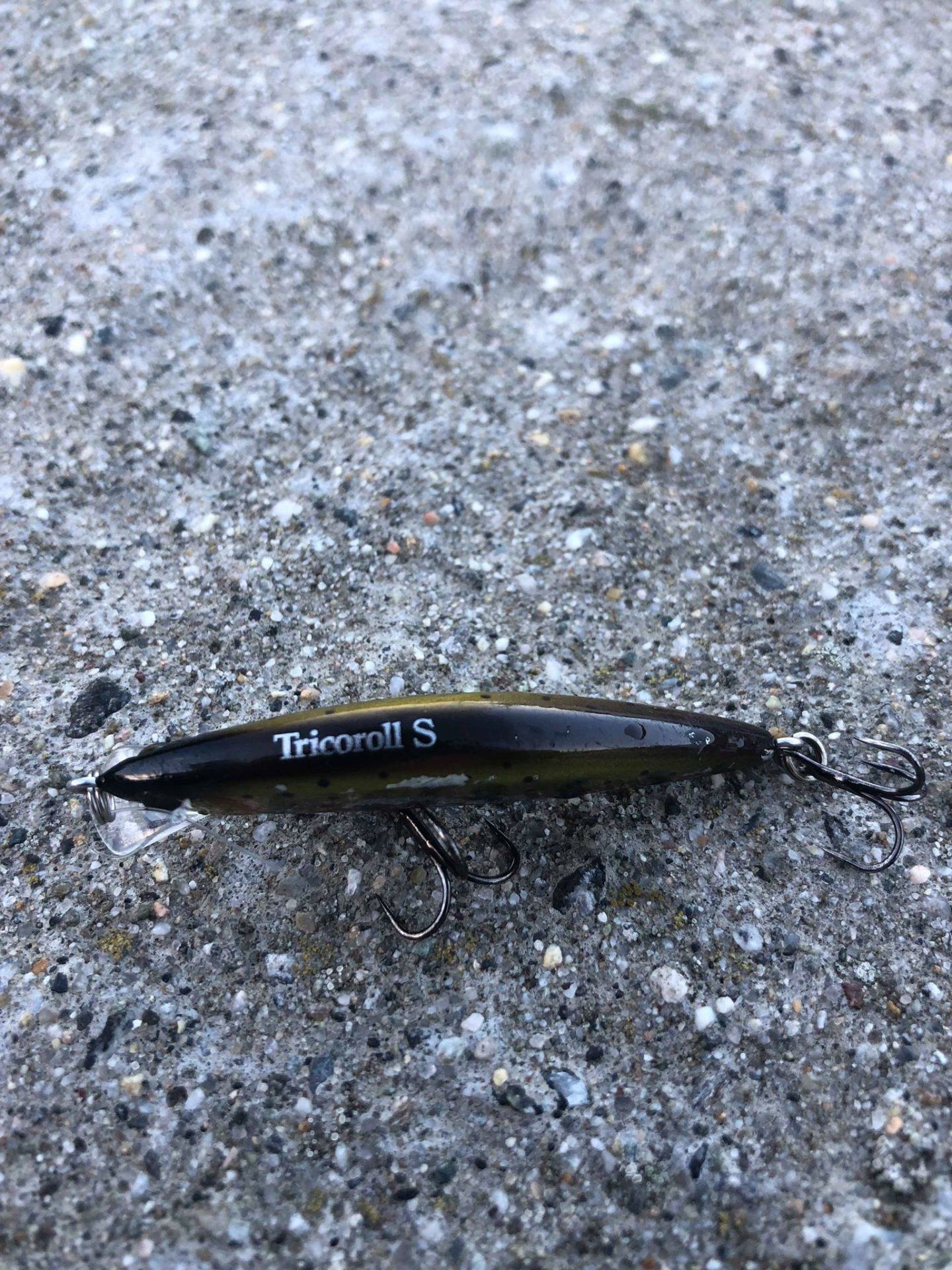 Dag nr. 2 var vell sjøørreten mer bite villig men jeg sleit VELDIG med å få de til å sitte. Da fisket jeg mest med select spoon og hadde flere hugg. Hadde på en som kjentes ganske grei ut. Det var hugg på select spoon,tiny fry, shad teez og gunki shad. Å jeg hadde en del følge fisk i mellom to brygger rett uten for en kiwi butik. To ganger så jeg 4-6 sjøørret som kom etter men de var i uinteresserte!  Men jeg fik en på tricoroll kl 11:22 og en på tiny fry kl 15:58 det ble med de den dagen.