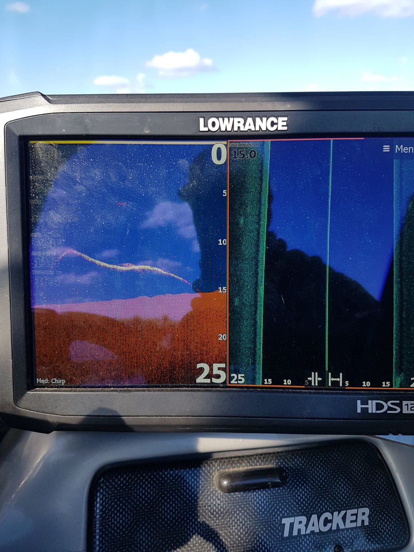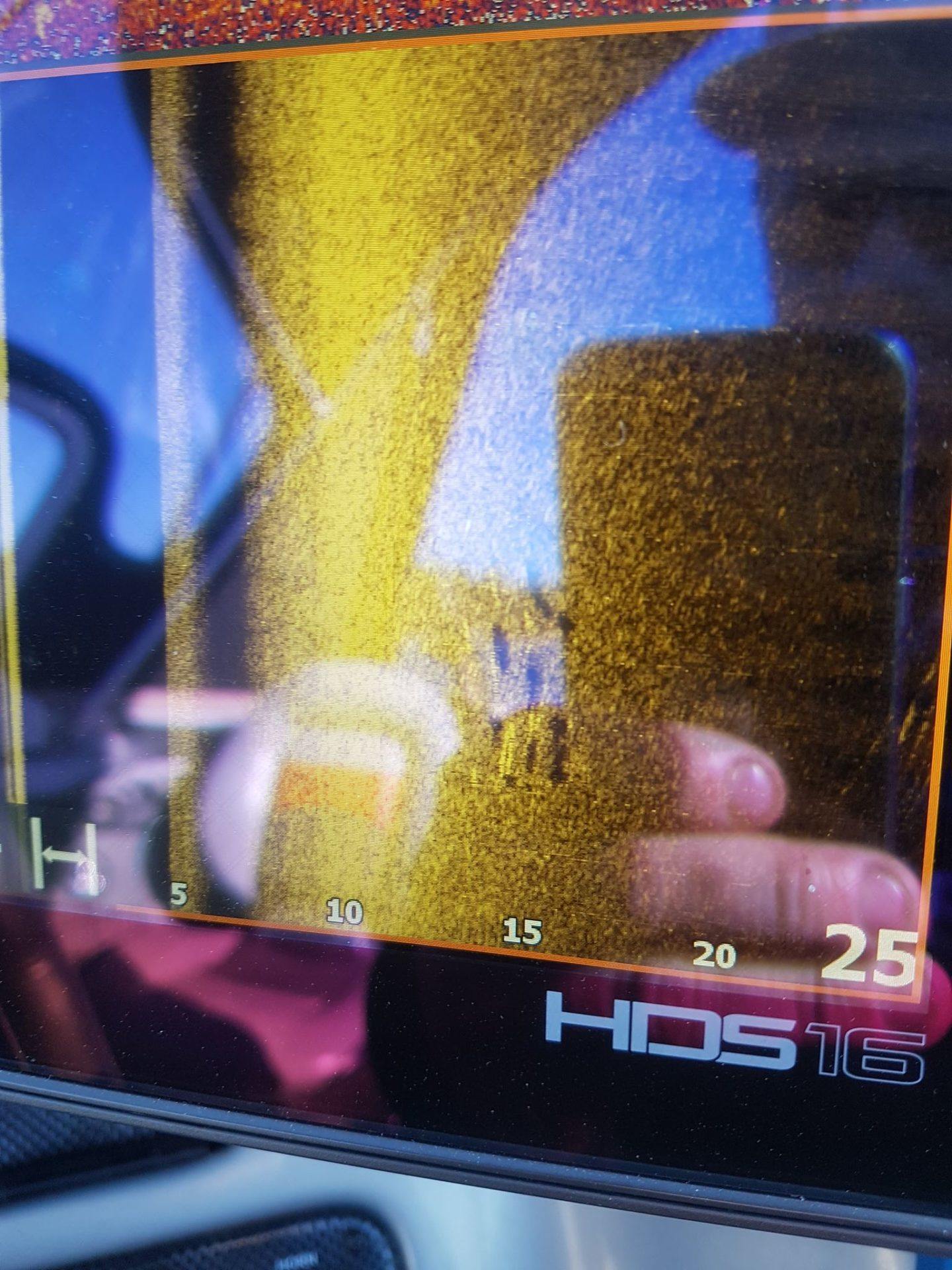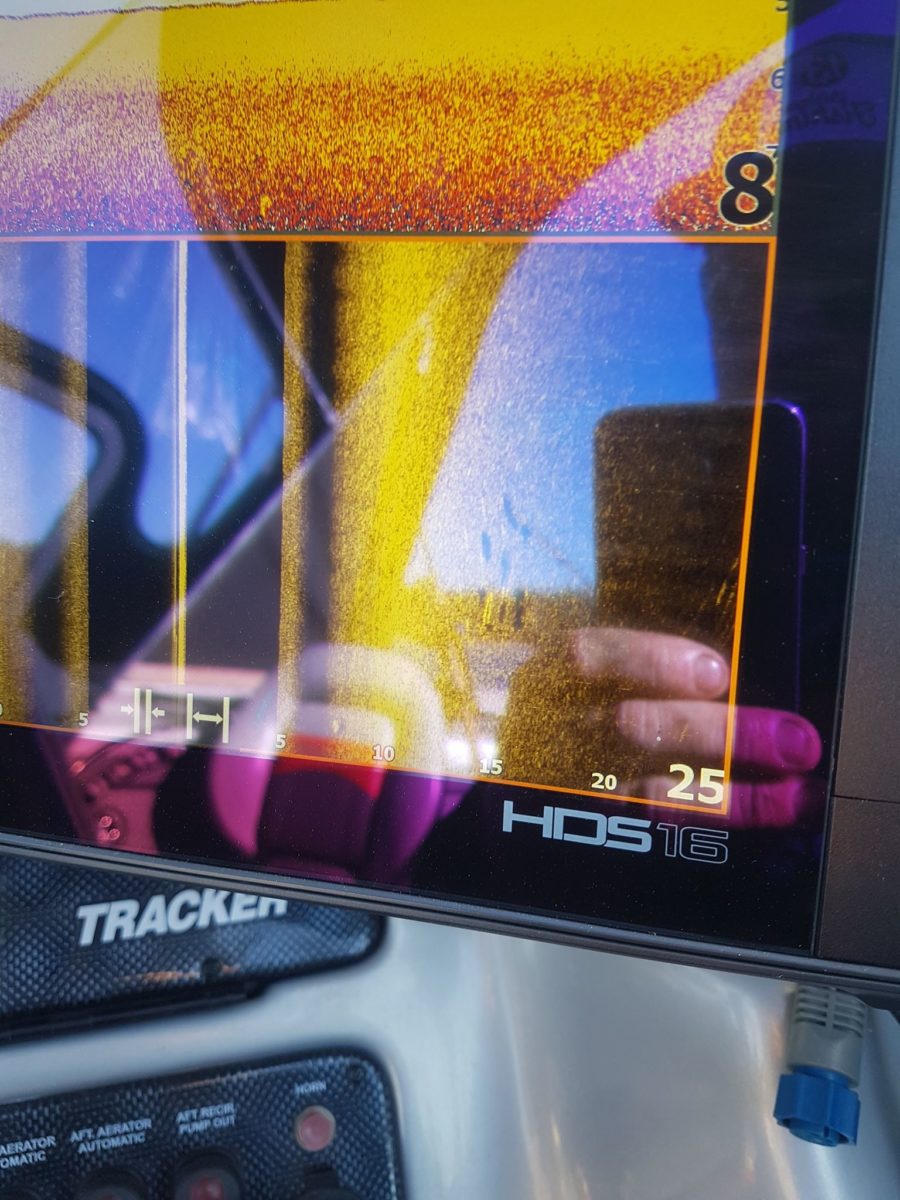 Han fikk noen mindre gjedder den dagen. Snill som Jonas er så fikk vi låne båten hans resten av påsken. Snakk om tillitt han tok med skuta mi hjem mens jeg tok over utstyret hans. Dagen etter dorget vi litt for å leite opp fisk. Da river det tell en flott fisk på. Marius drar den inn med storskjelven