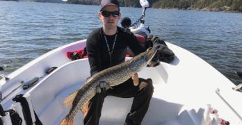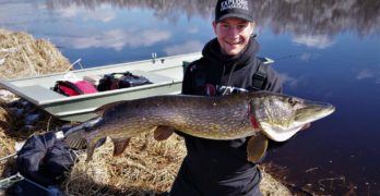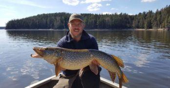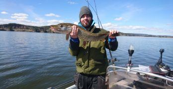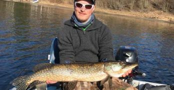 To herlig gjedder av Jonas. Vi bukker ærbødig og ønsker deg velkommen inn i konkurransen. Gratulerer med to flotte fisker. … (Les mer...) omJonas J. Nygaard med minigris varning.